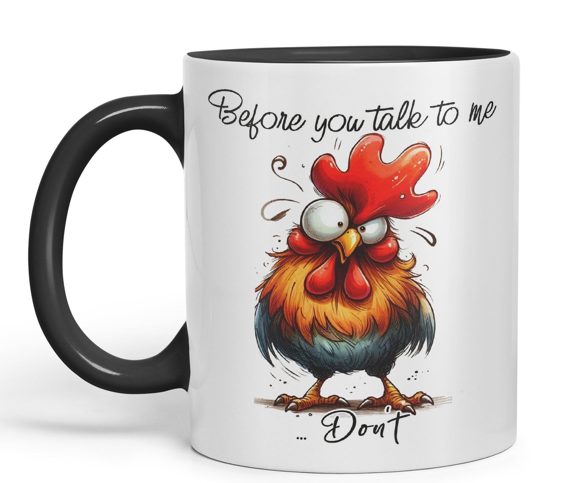 Before You Talk to me .. Don't Rooster, Joke sarkasm Sarcastic Ceramic Coloured Mug Cup for Tea Coffee Hot Brew 330ml 11Oz Gift