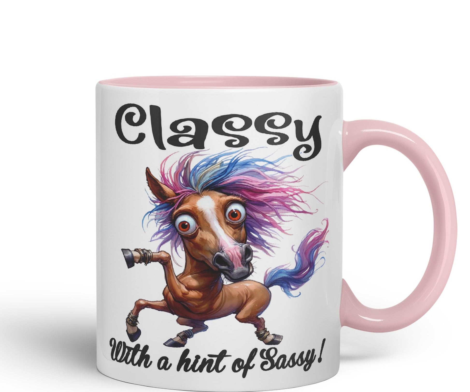 Classy with a hint of Sassy! Horse cat Joke sarkasm Sarcastic Ceramic Coloured Mug Cup for Tea Coffee Hot Brew 330ml 11Oz Gift