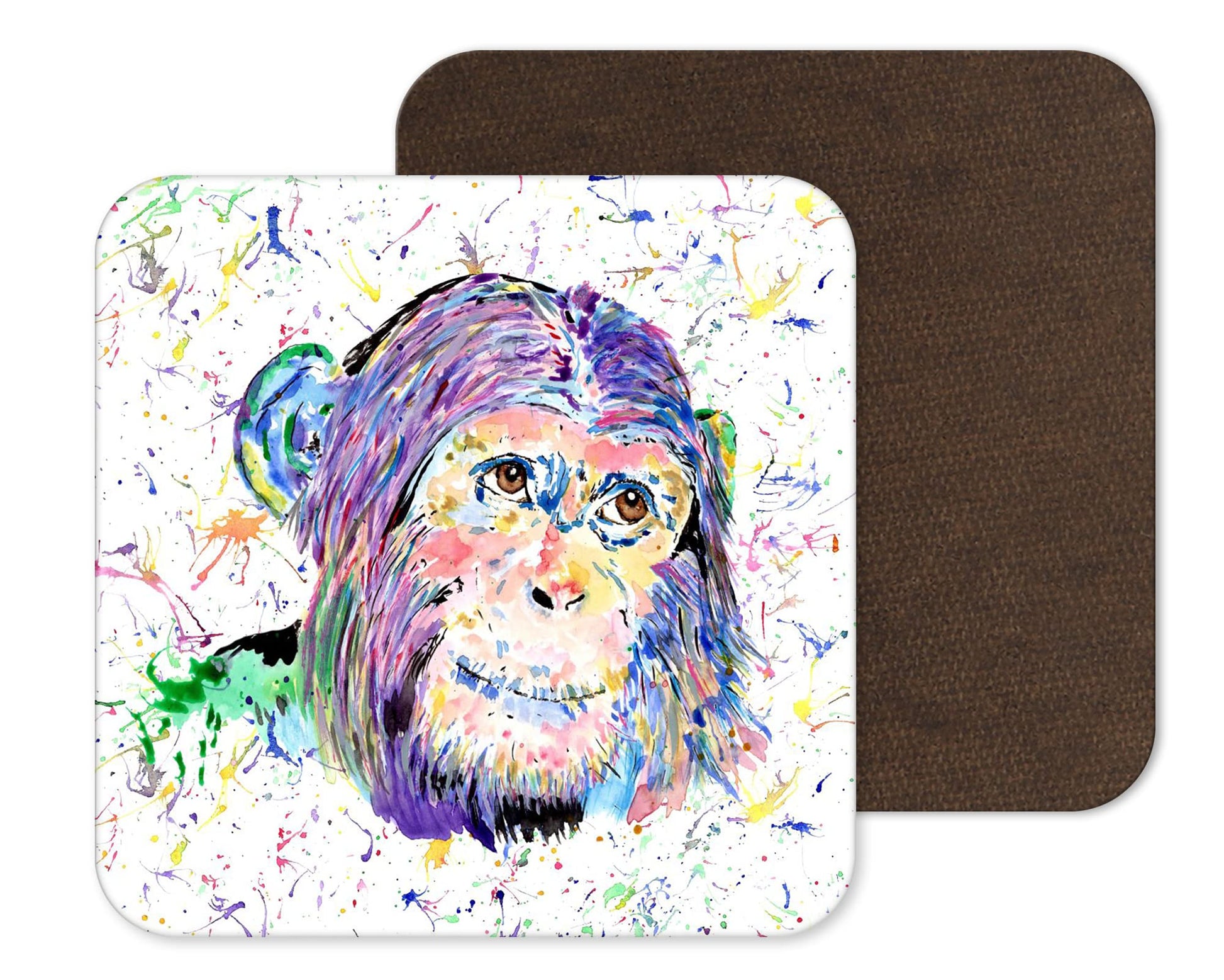 Coaster Chimp Ape Apes Chimpanzee Coasters Watercolour Art Gift Work Office Dining Tea coffee
