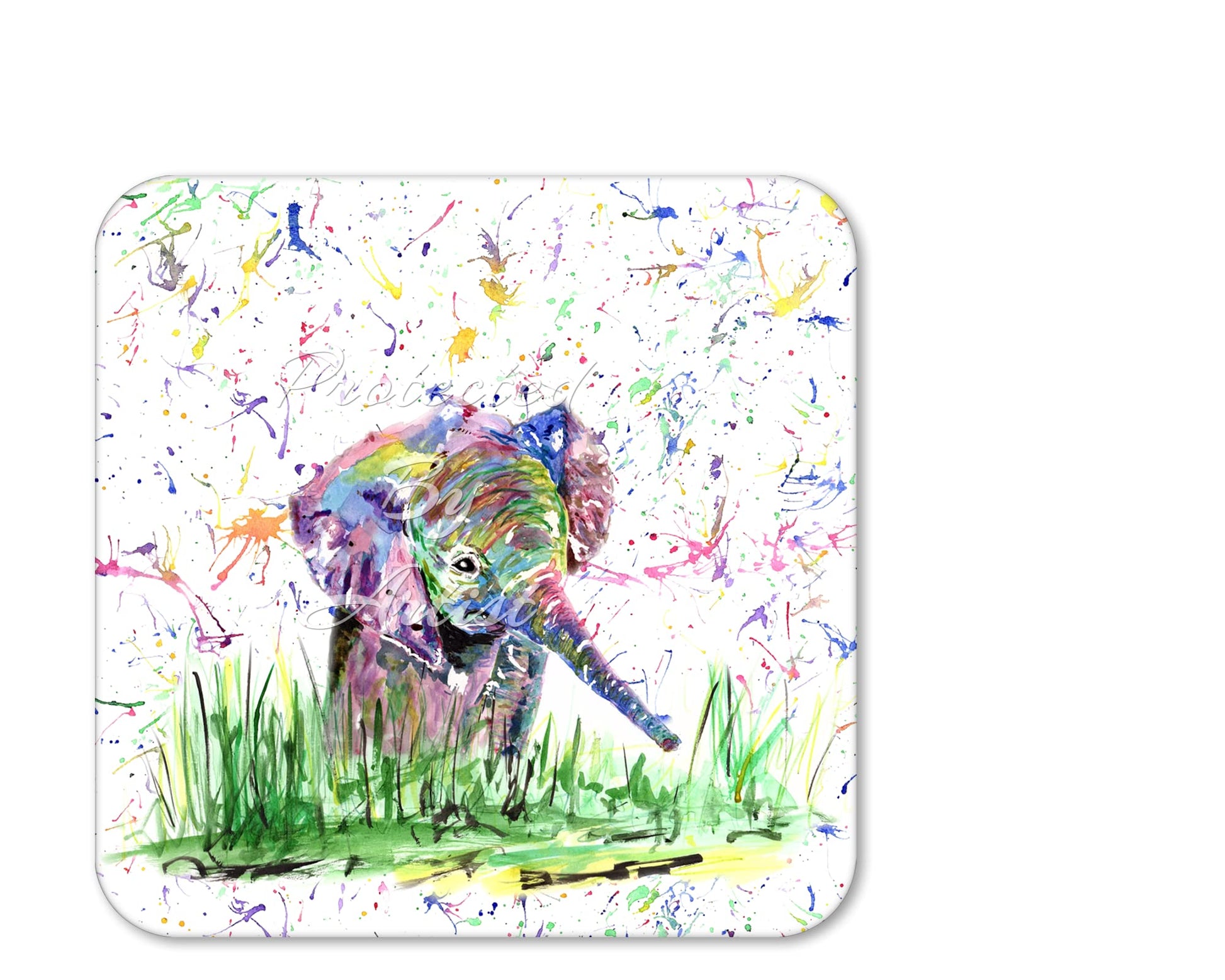 Coaster Elephant baby wild Animals Coasters Watercolour Art Gift Work Office Dining Tea coffee
