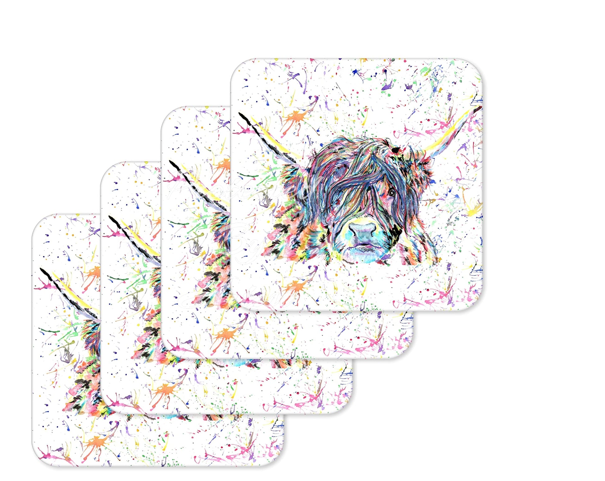 Coaster Highland Cow Scottish Farm Animals Coasters Watercolour Art Gift Work Office Dining Tea coffee