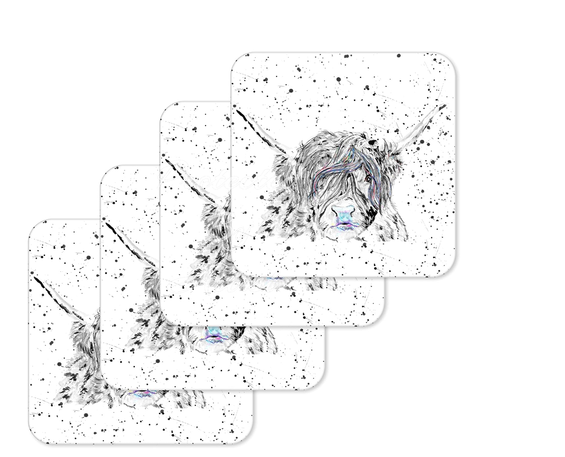 Coaster Highland Cow Scottish Farm Black white Animals Coasters Watercolour Art Gift Work Office Dining Tea coffee