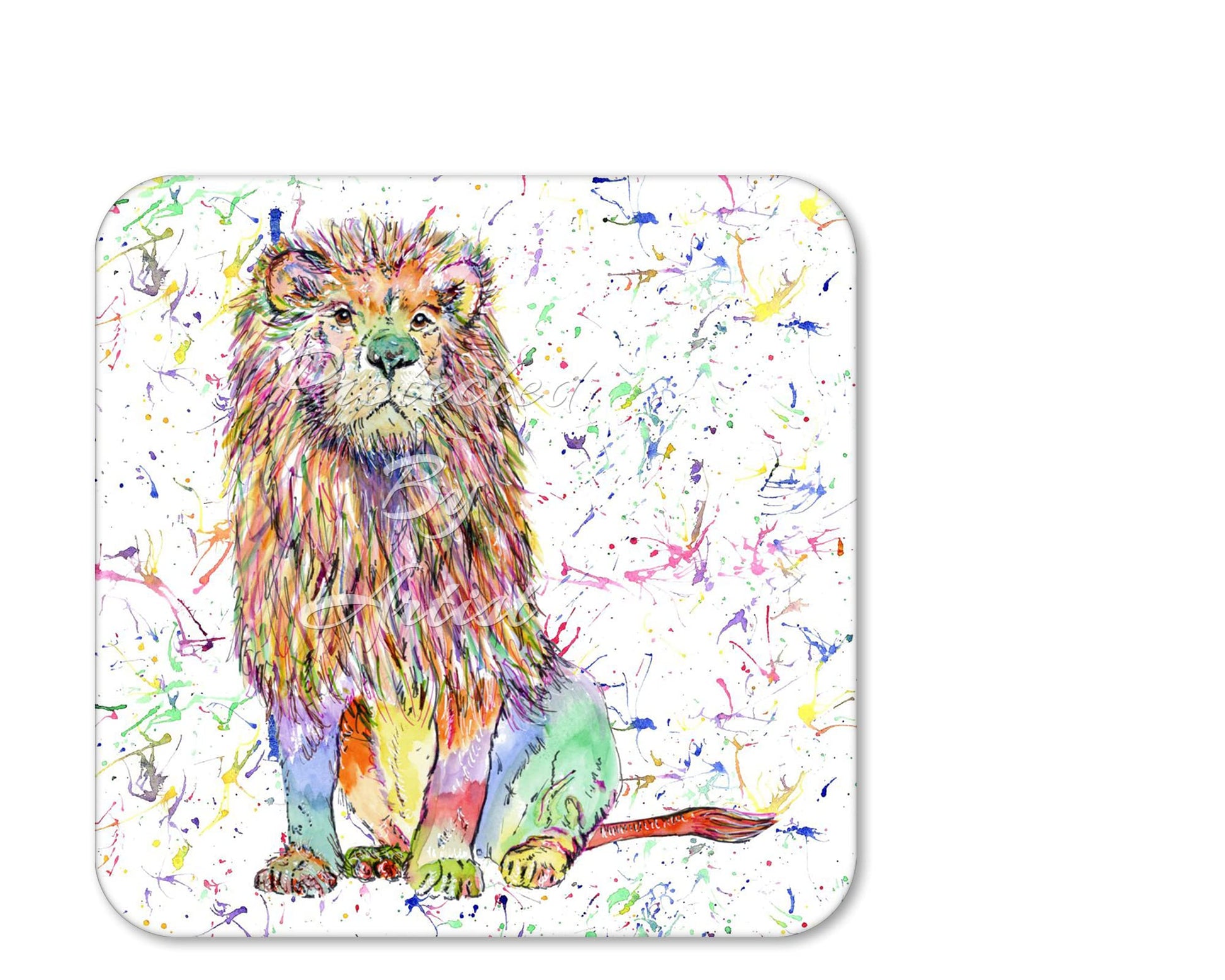 Coaster Lion big Cat Animals Coasters Watercolour Art Gift Work Office Dining Tea coffee