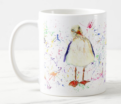 Seagull Beach Seafront Bird Animal Watercolour Rainbow Art Coloured Mug Cup