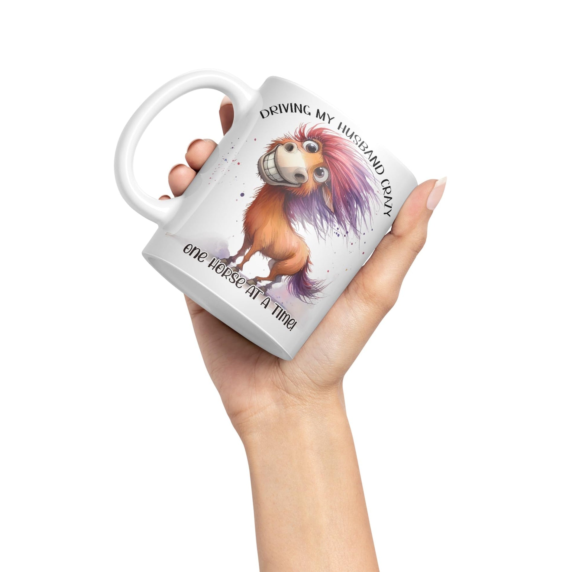 Driving My Husband Crazy, One Horse at at a Time Joke sarkasm Sarcastic Ceramic Coloured Mug Cup for Tea Coffee Hot Brew 330ml 11Oz Gift