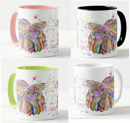 Fish Betta Siamese Fighting Animals Watercolour Art Coloured Mug Cup