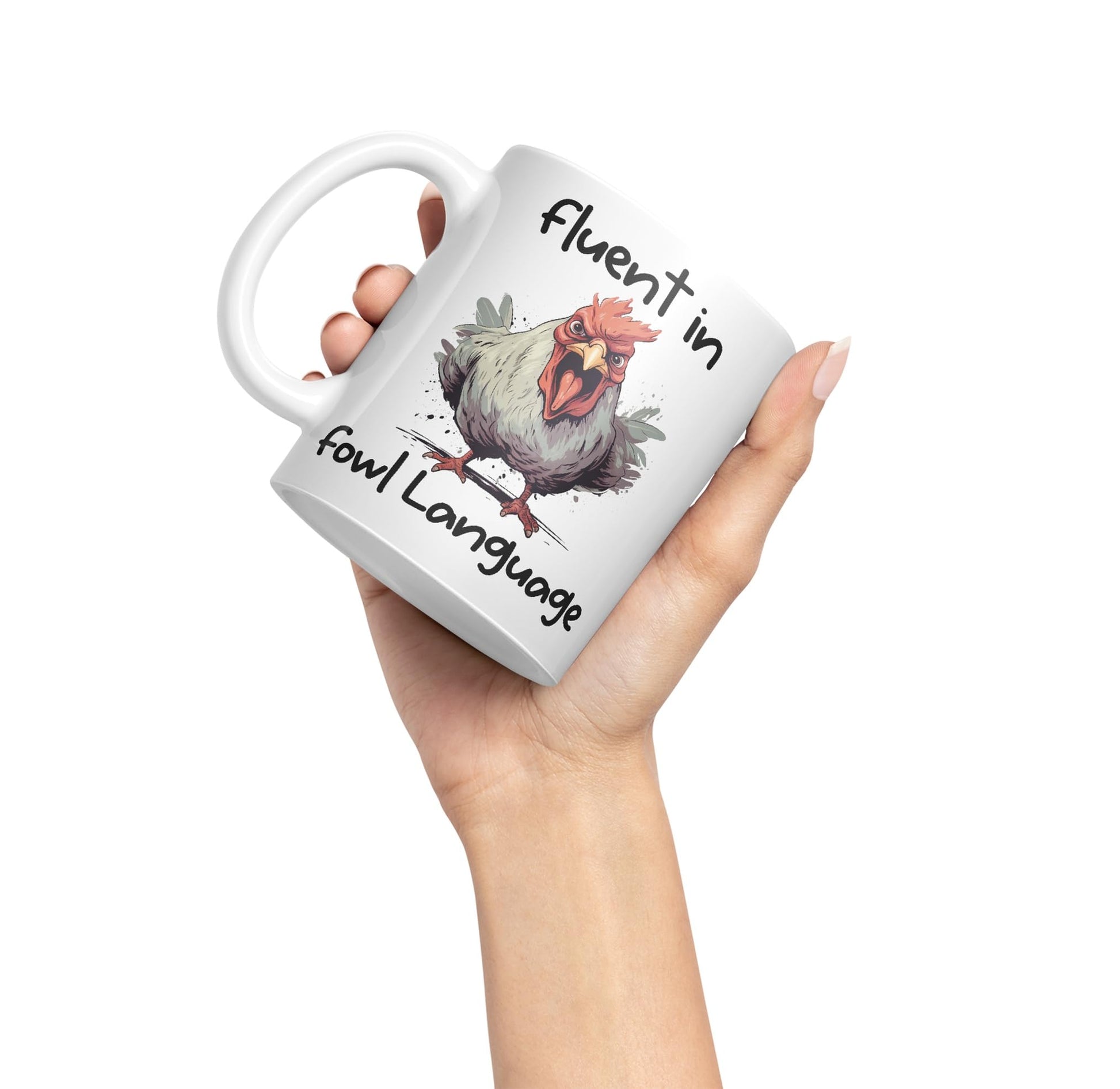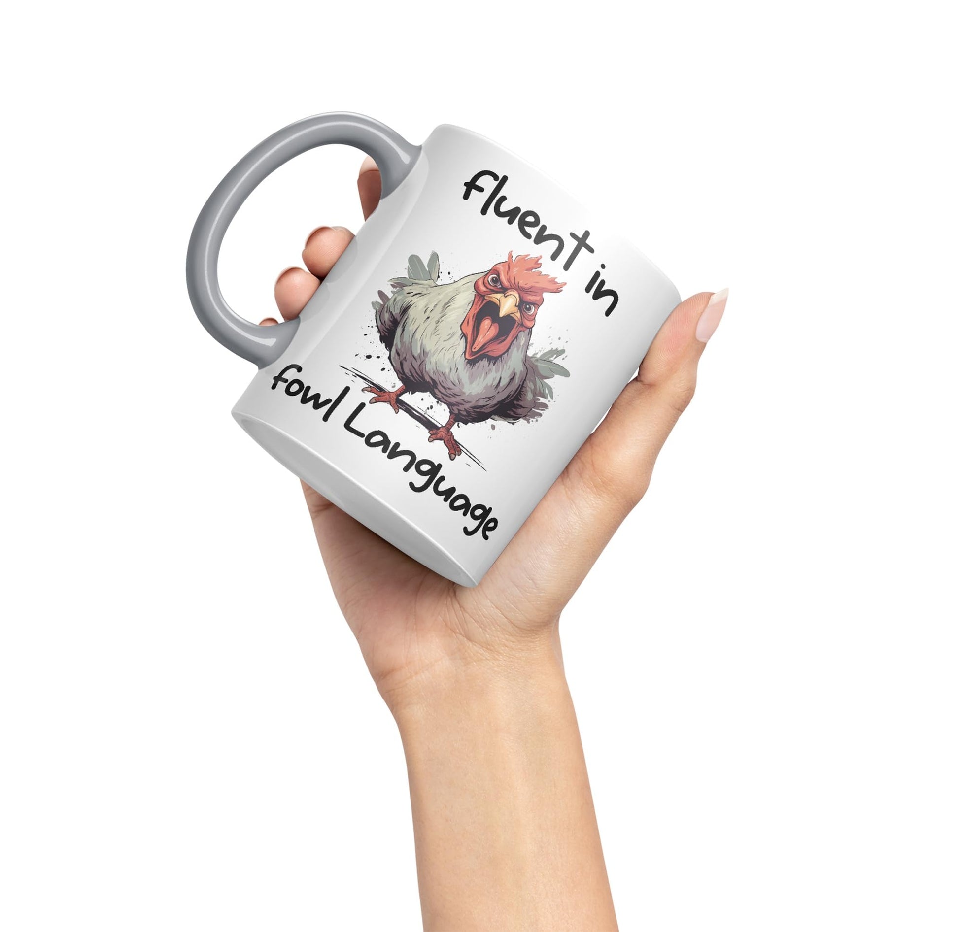 Fluent in Fowl Language Rooster cockerel Joke sarkasm Sarcastic Ceramic Coloured Mug Cup for Tea Coffee Hot Brew 330ml 11Oz Gift