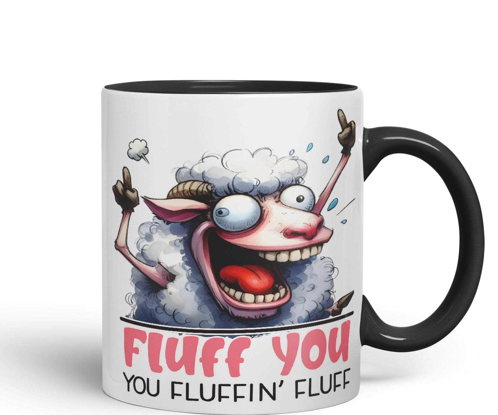 Fluff You, You Fluffin' Fluff Sheep joke sarkasm sarcastic Ceramic Coloured Mug Cup for Tea Coffee Hot brew 330ml 11Oz Gift (Black)
