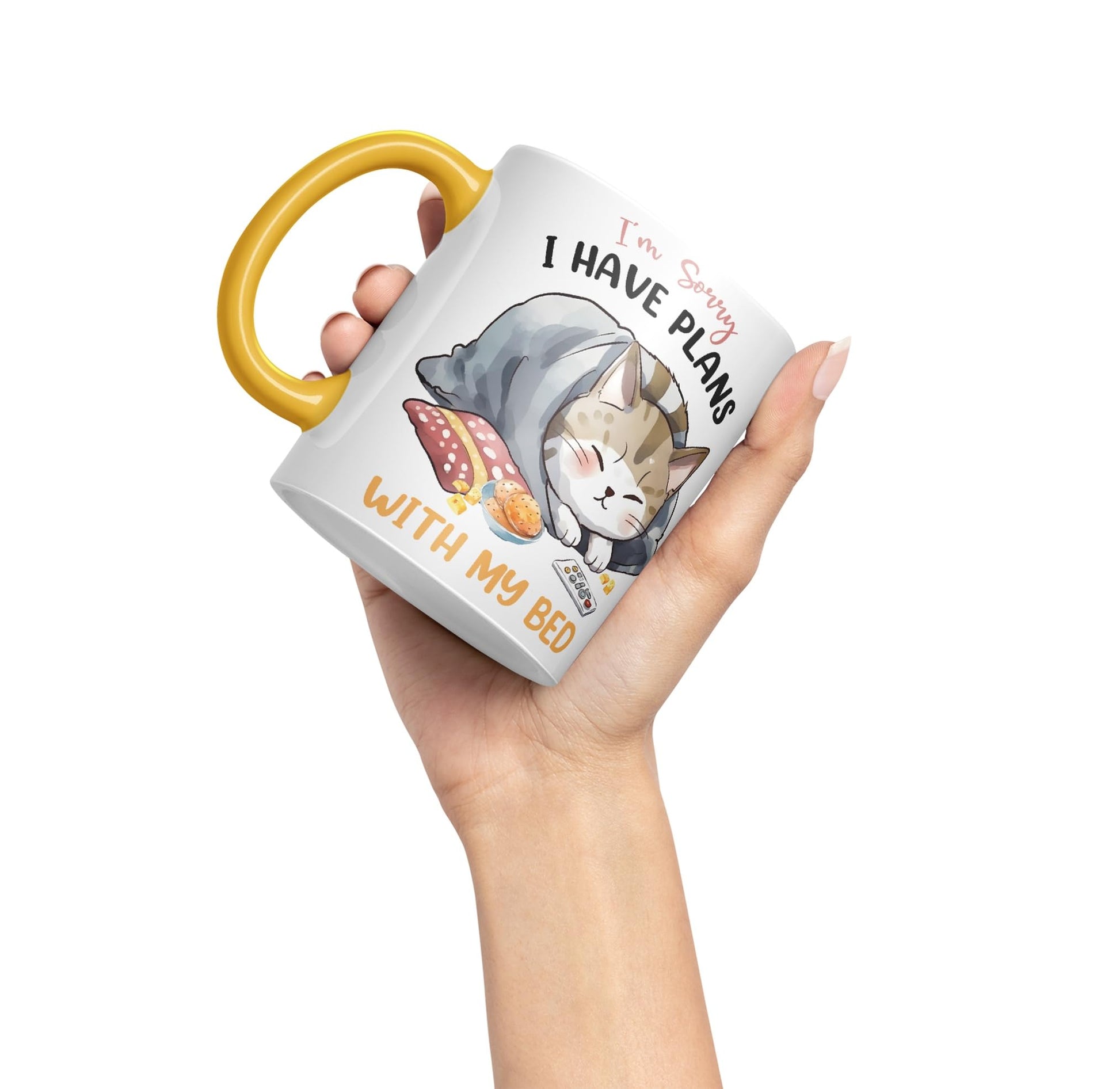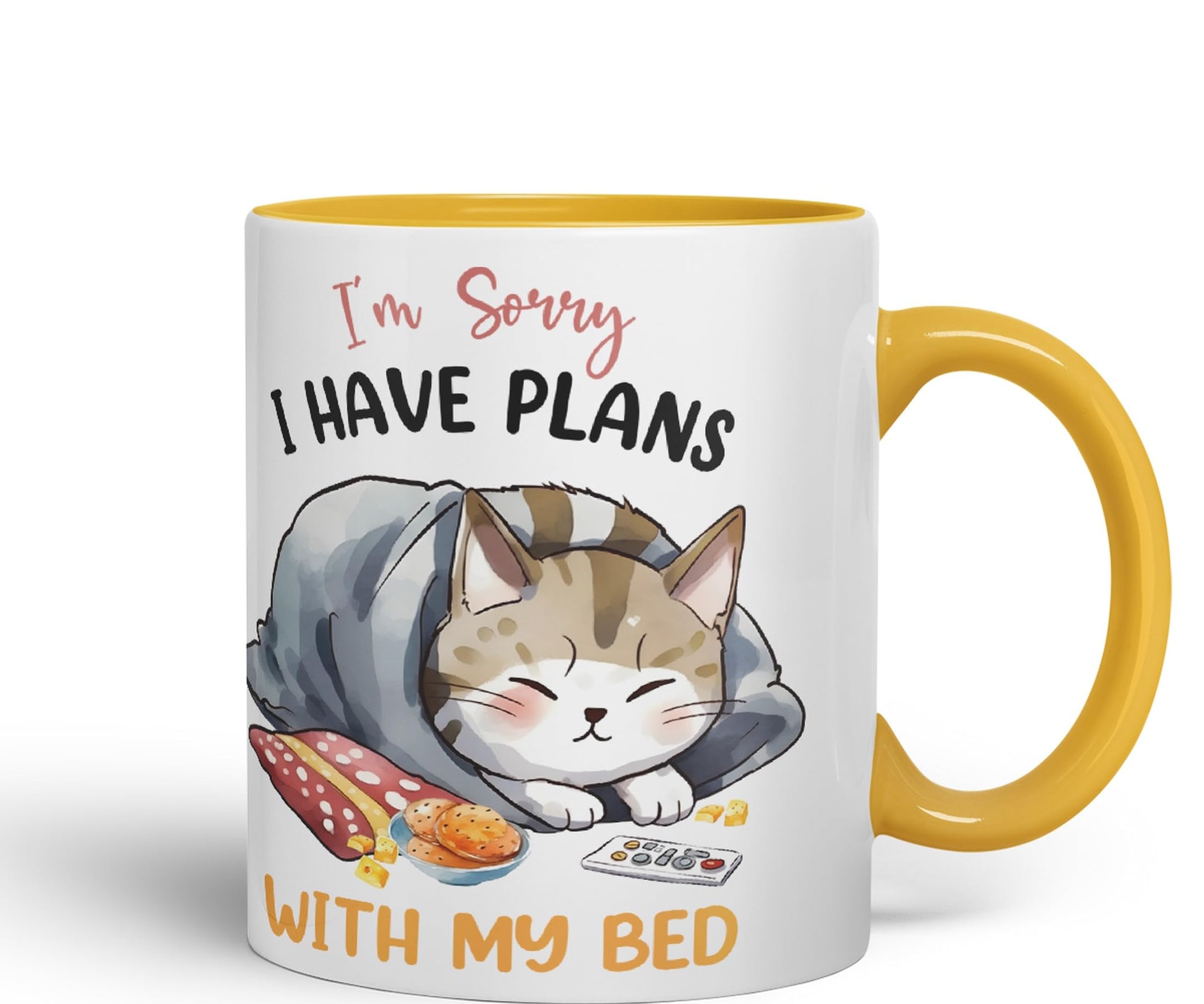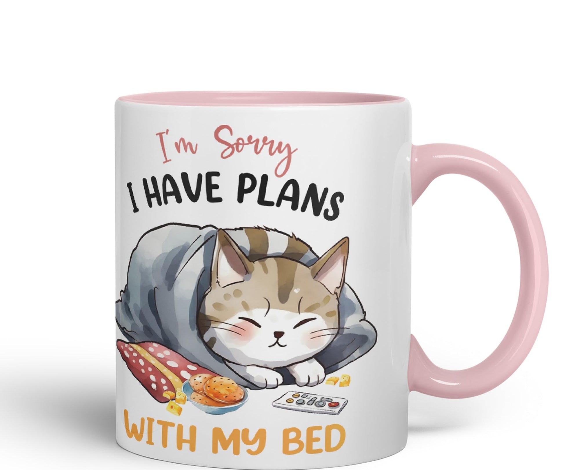 I'm Sorry, I Have Plans with My Bed, cat Sarcastic Joke Ceramic Coloured Mug Cup for Tea Coffee Hot Brew 330ml 11Oz