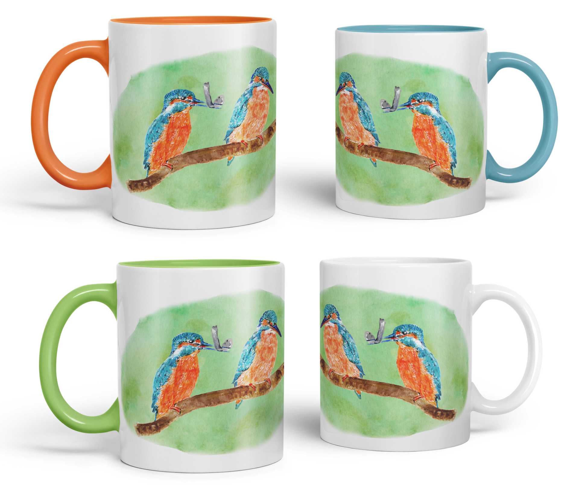 King Fisher Kingfisher Pair Bird animals Watercolour Rainbow Art Coloured Mug Cup