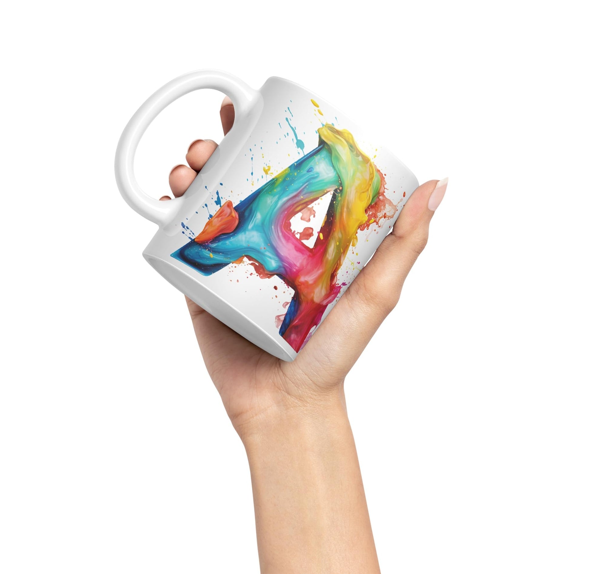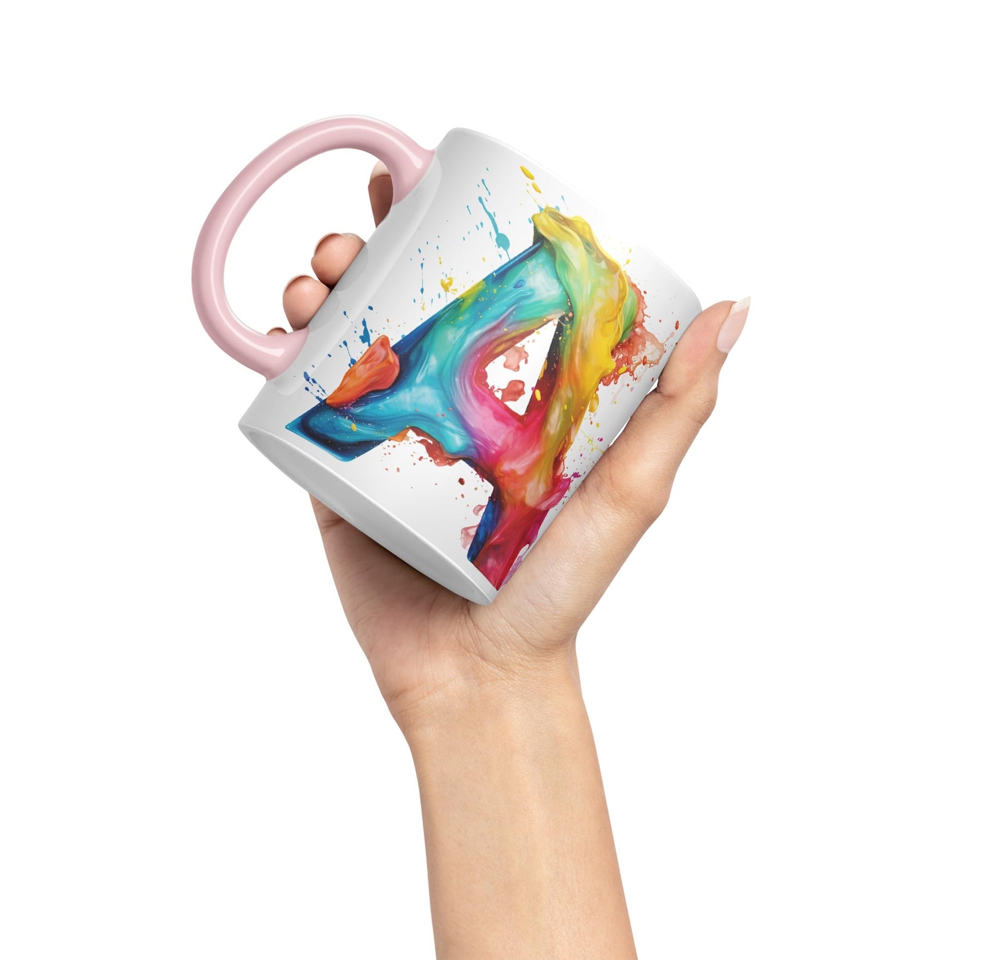 Letter A mug, Alphabet Letter A Monogram watercolour Ceramic Coloured Mug Cup for Tea Coffee Hot brew 330ml 11Oz Gift