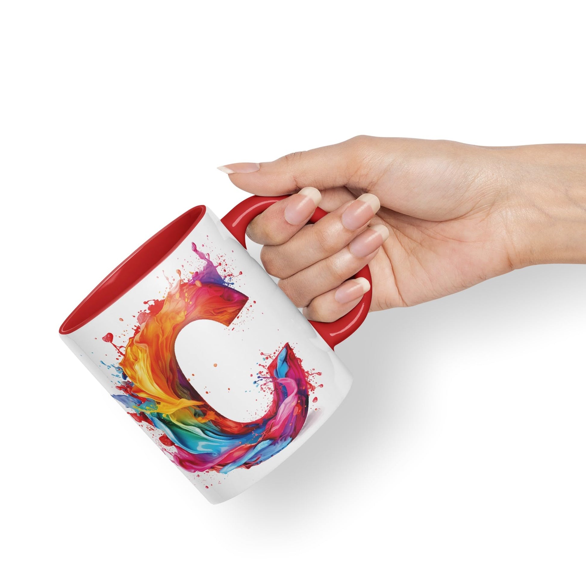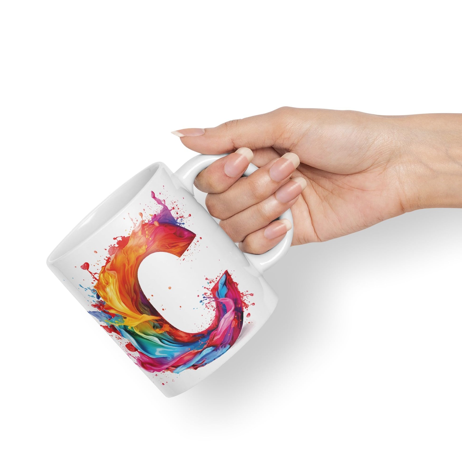 Letter C mug, Alphabet Letter C Monogram watercolour Ceramic Coloured Mug Cup for Tea Coffee Hot brew 330ml 11Oz Gift