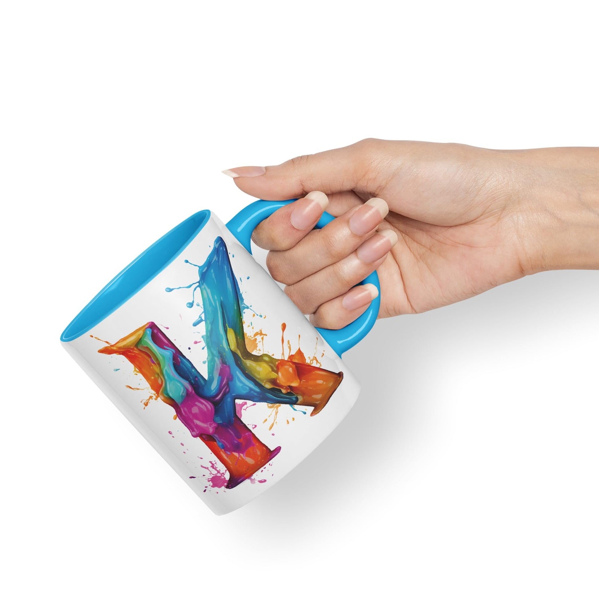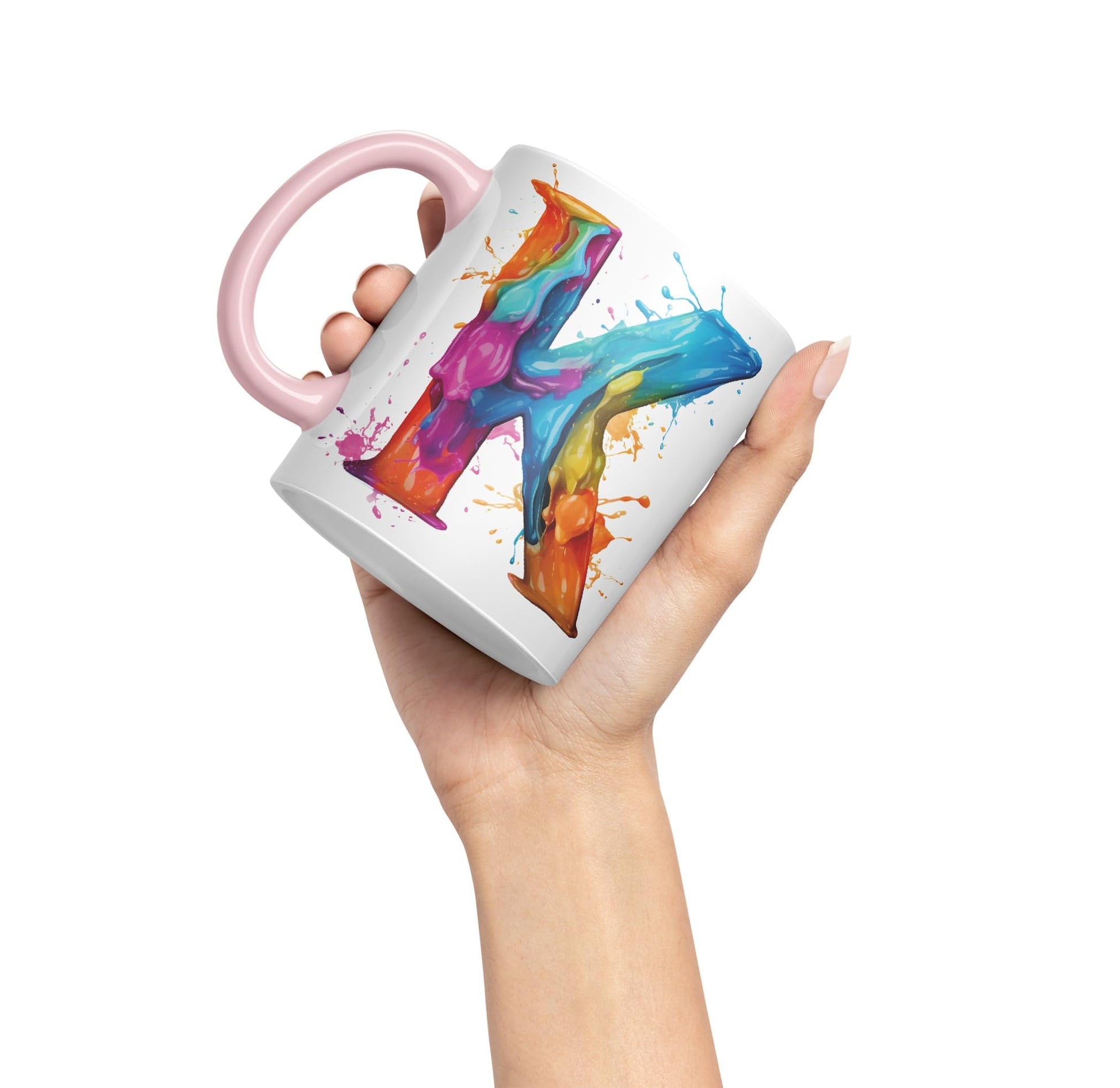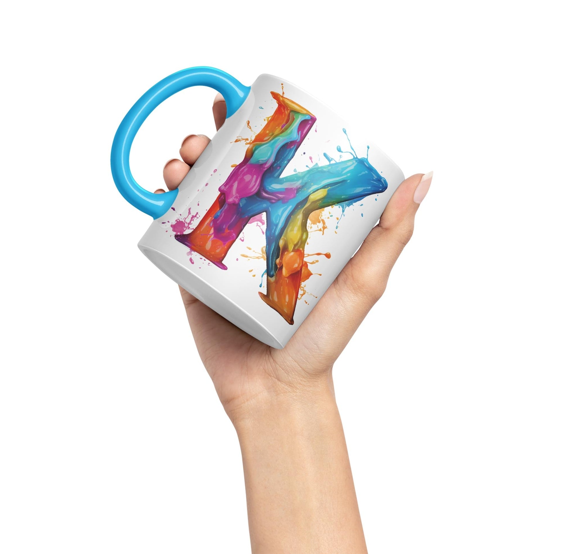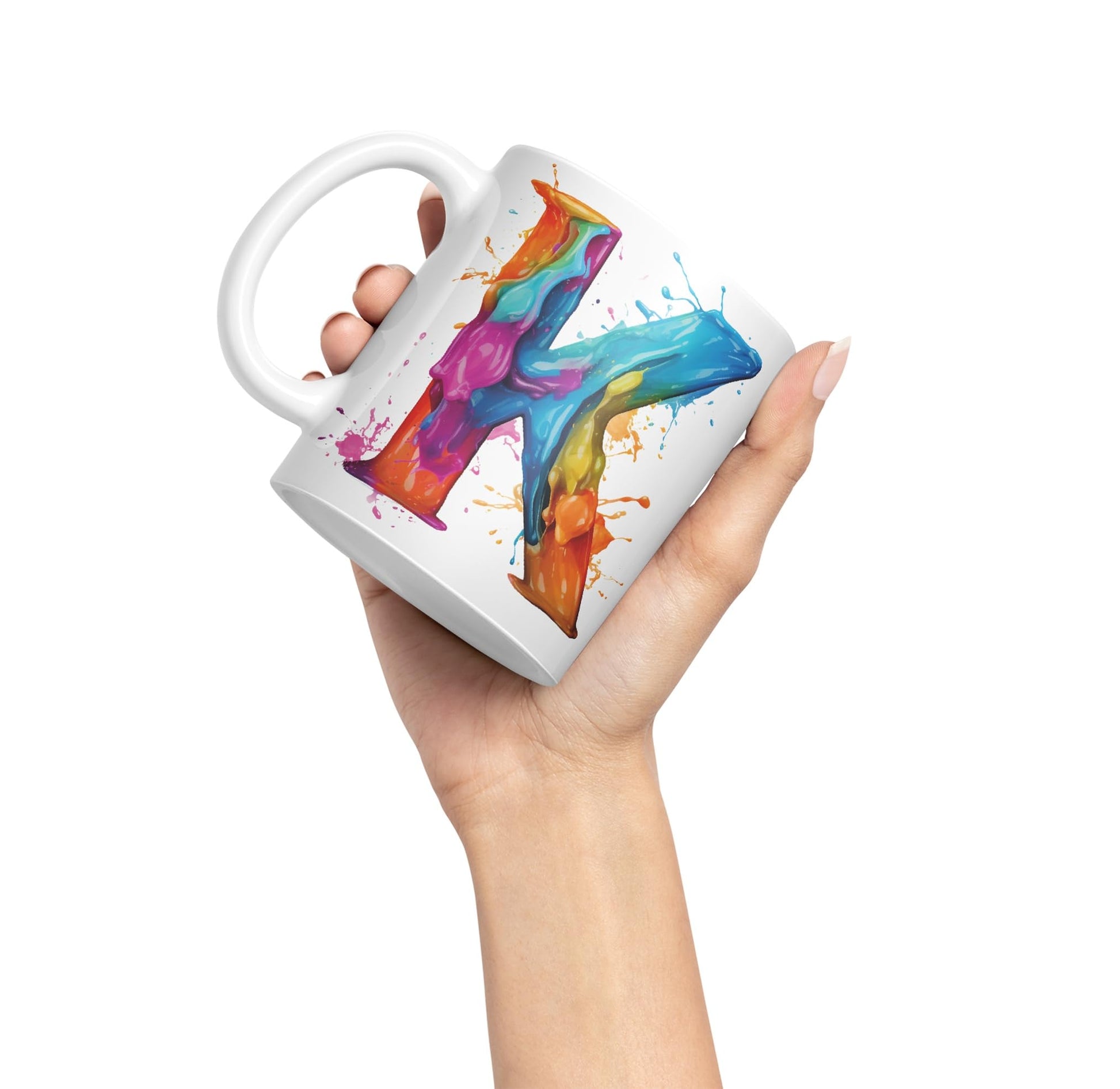Letter K mug, Alphabet Letter K Monogram watercolour Ceramic Coloured Mug Cup for Tea Coffee Hot brew 330ml 11Oz Gift