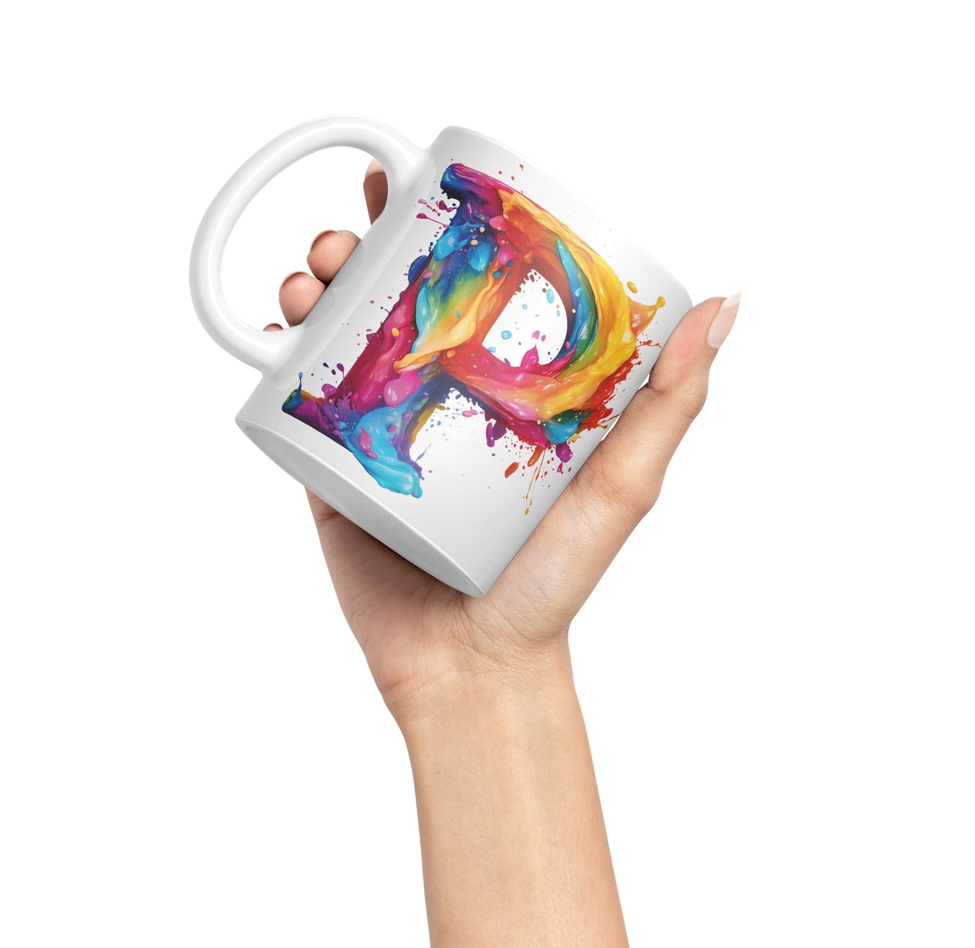 Letter P mug, Alphabet Letter P Monogram watercolour Ceramic Coloured Mug Cup for Tea Coffee Hot brew 330ml 11Oz Gift