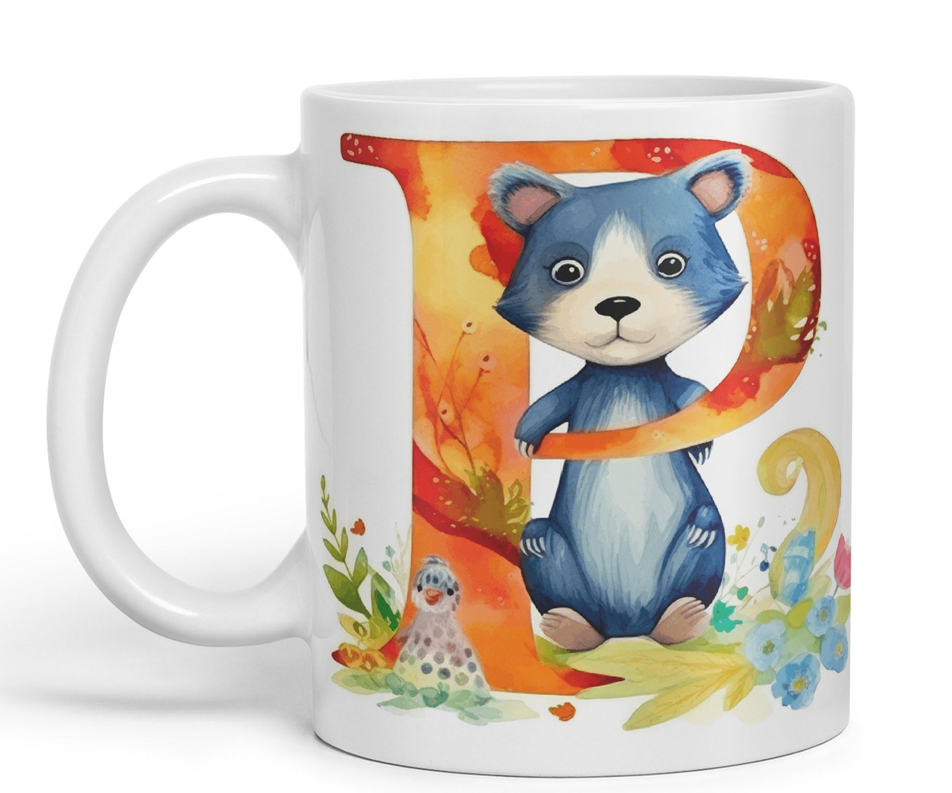 Letter P mug, Animals Alphabet Letter P Monogram animal for kids Ceramic Coloured Mug Cup for Tea Coffee Hot brew 330ml 11Oz Gift