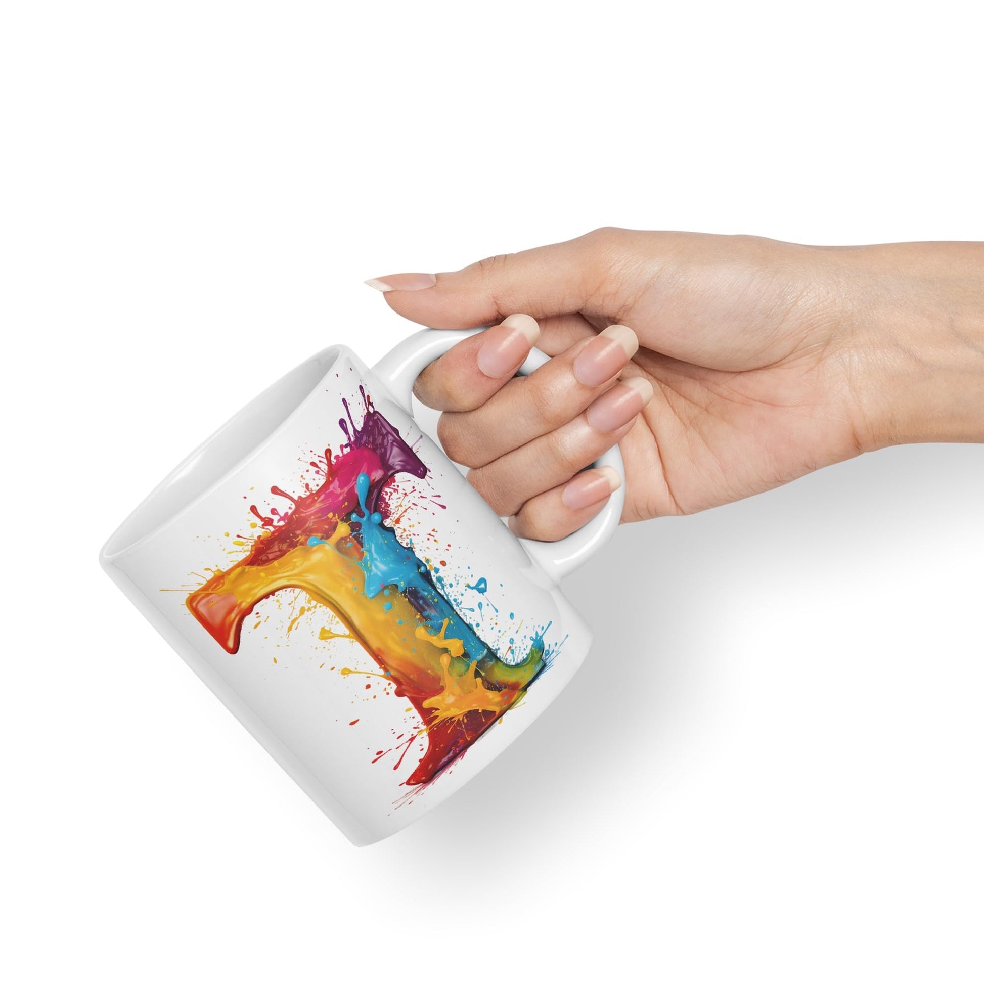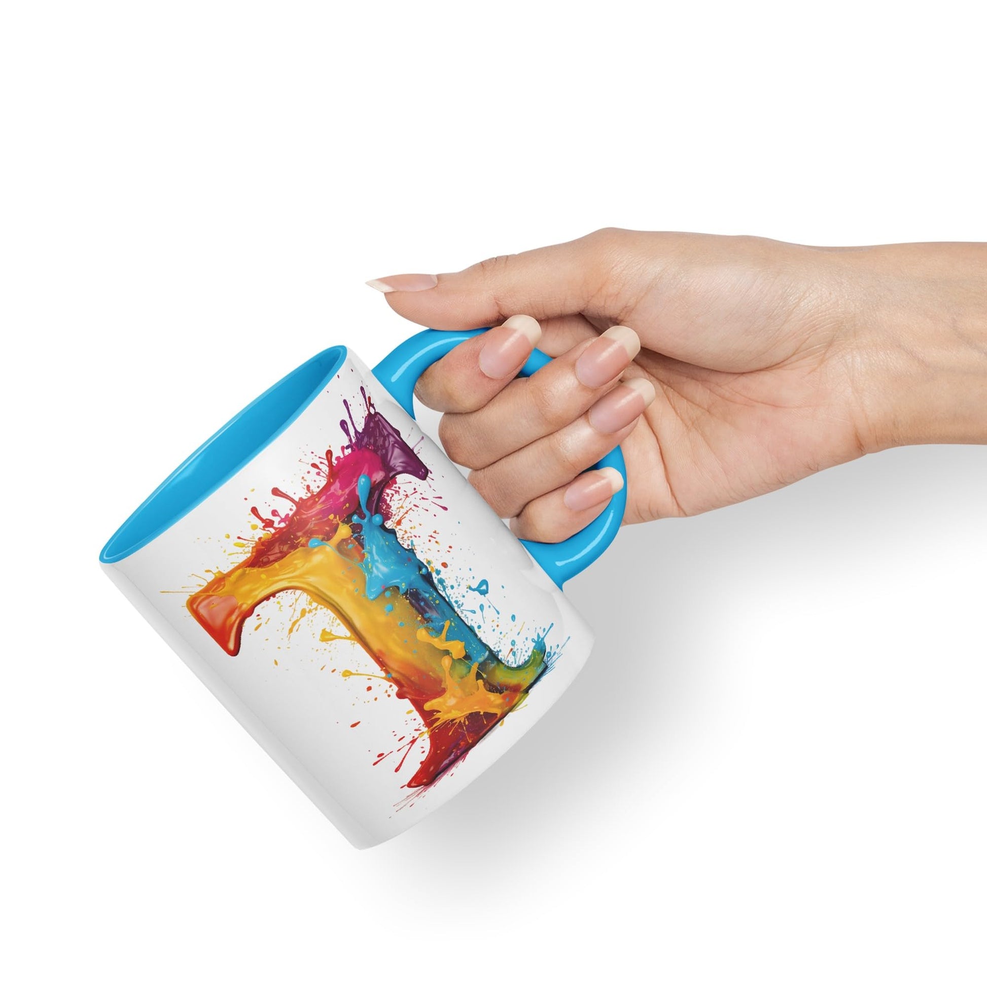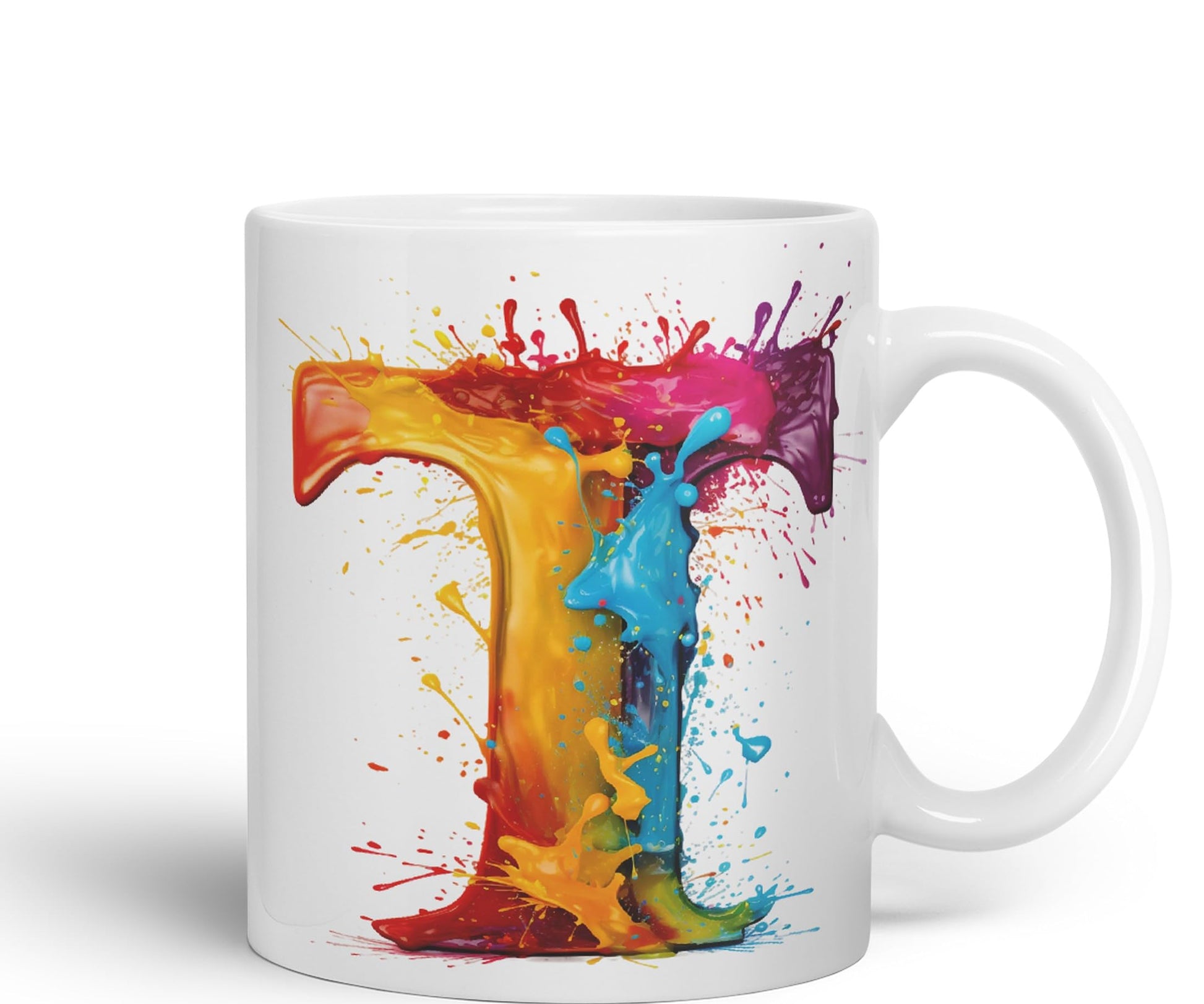 Letter T mug, Alphabet Letter T Monogram watercolour Ceramic Coloured Mug Cup for Tea Coffee Hot brew 330ml 11Oz Gift