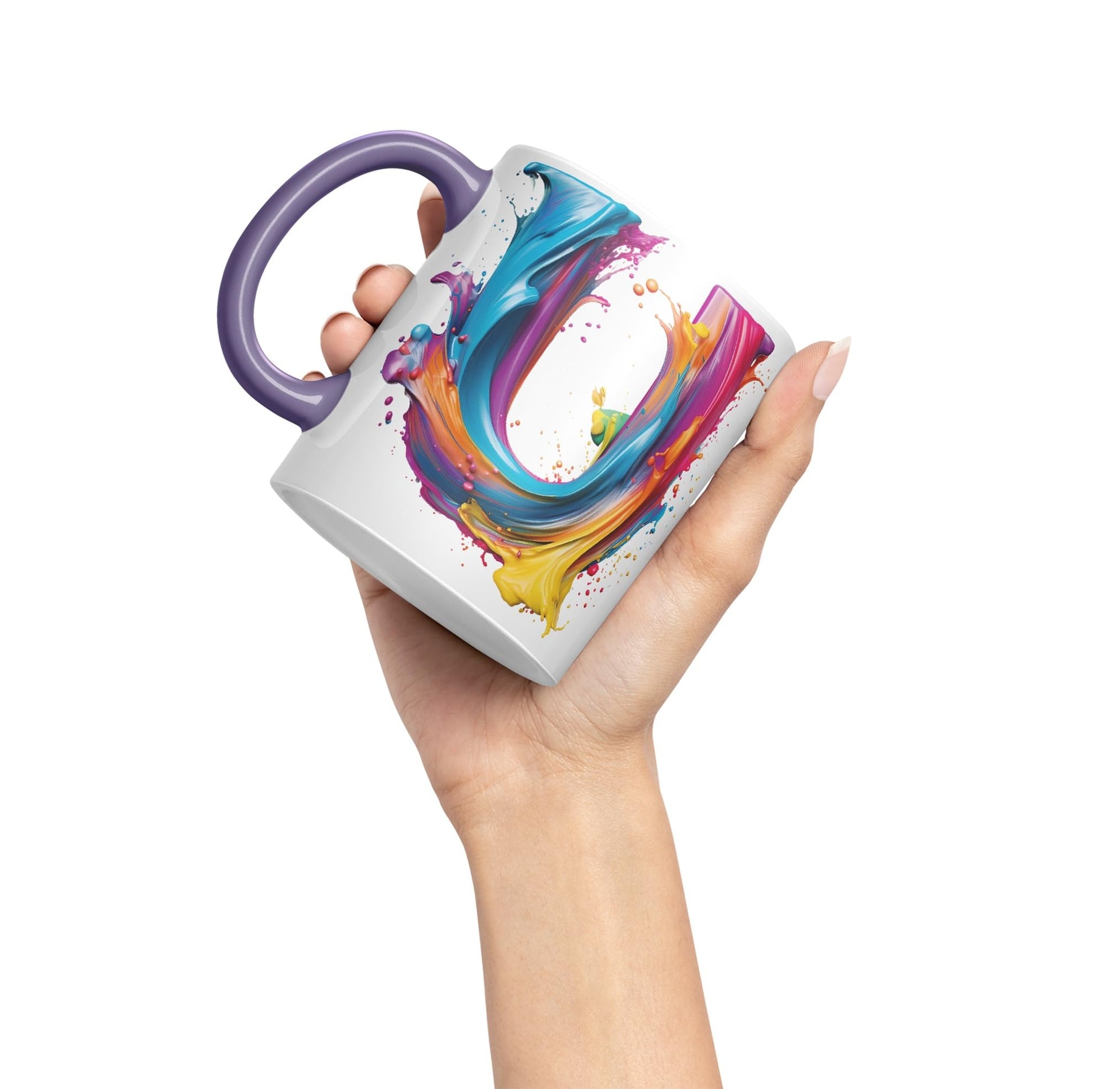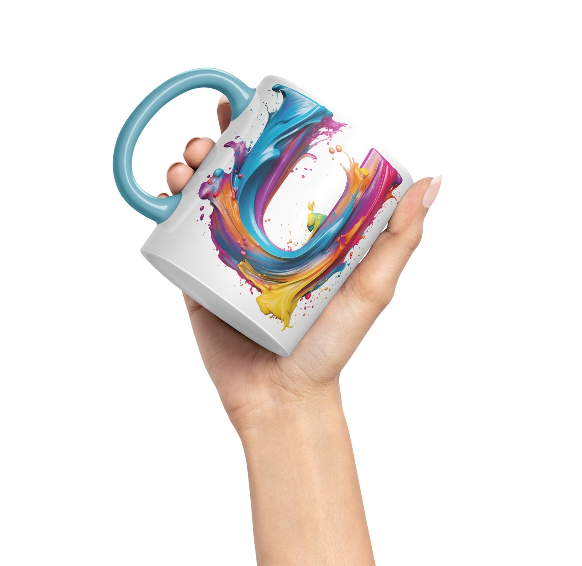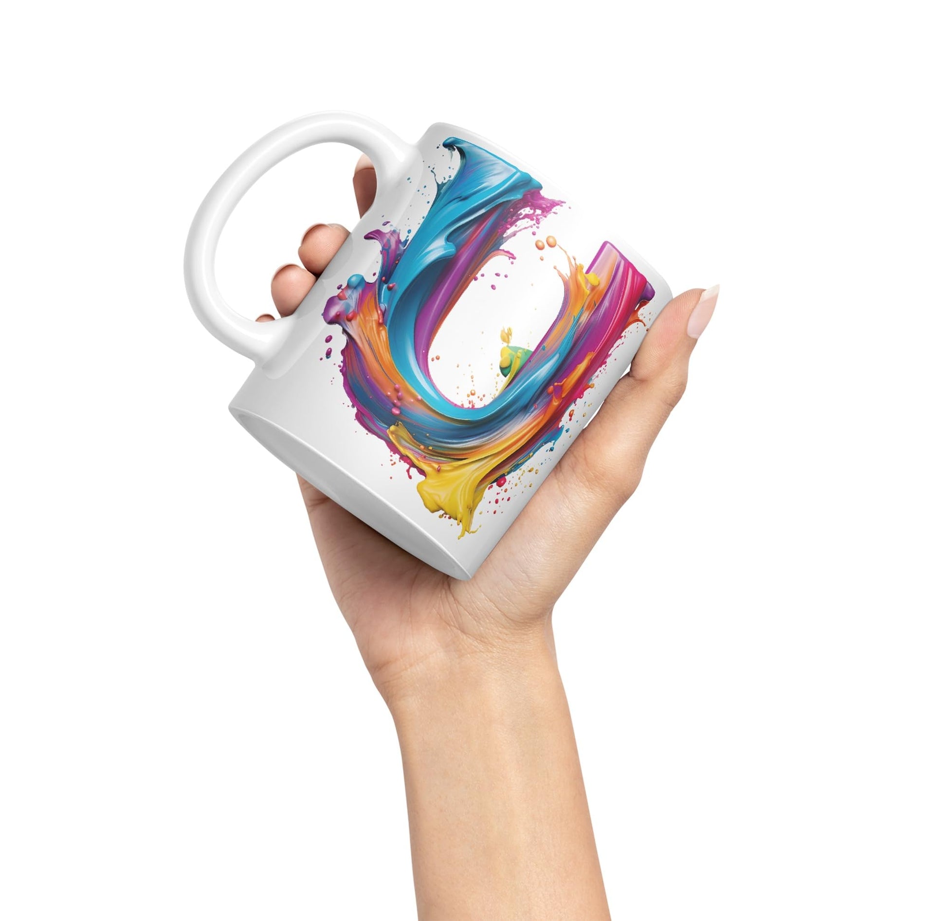 Letter U mug, Alphabet Letter U Monogram watercolour Ceramic Coloured Mug Cup for Tea Coffee Hot brew 330ml 11Oz Gift