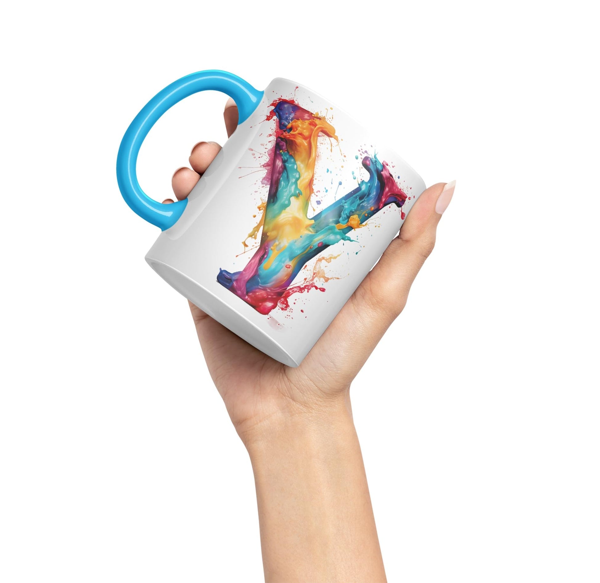 Letter Y mug, Alphabet Letter R Monogram watercolour Ceramic Coloured Mug Cup for Tea Coffee Hot brew 330ml 11Oz Gift (L Blue)