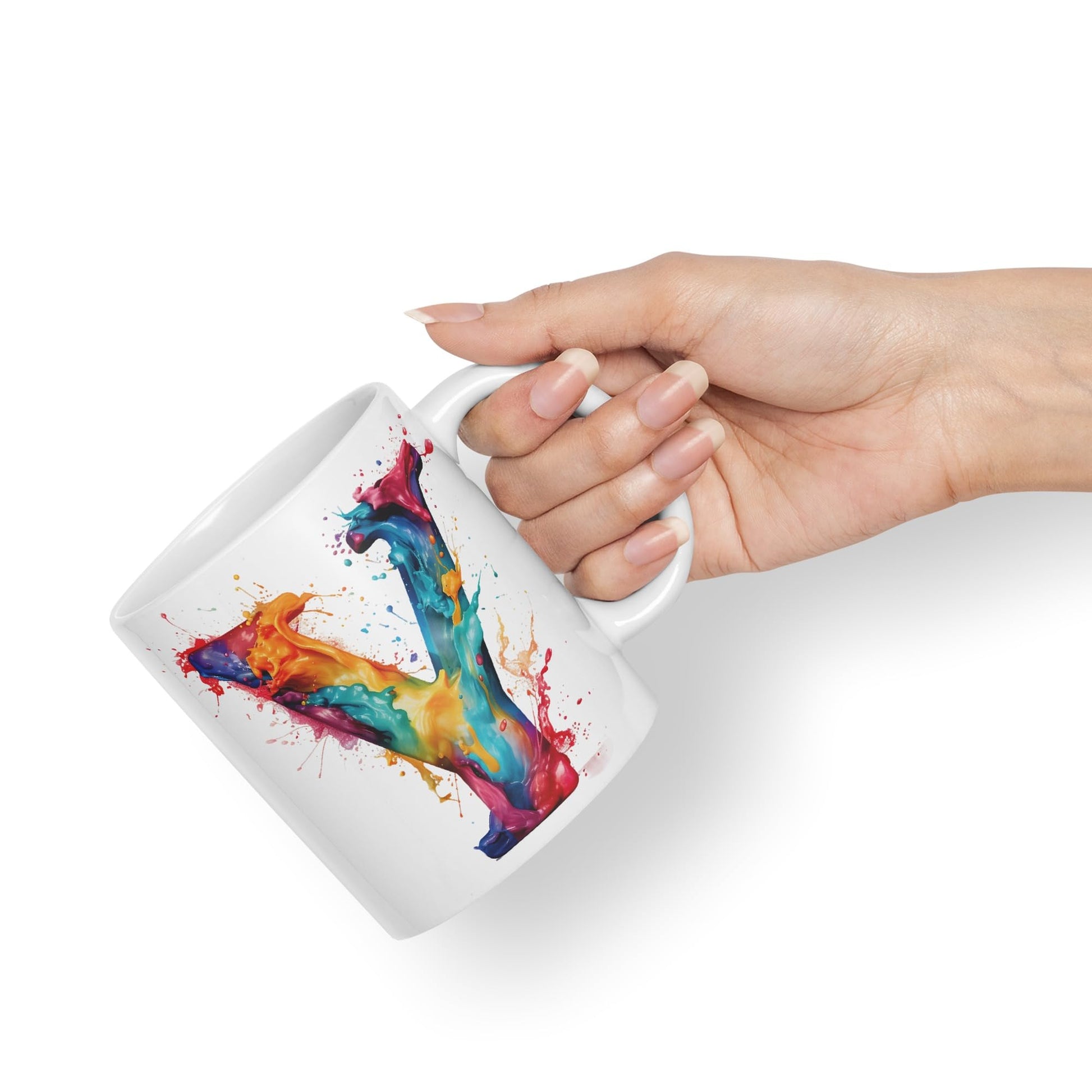 Letter Y mug, Alphabet Letter R Monogram watercolour Ceramic Coloured Mug Cup for Tea Coffee Hot brew 330ml 11Oz Gift