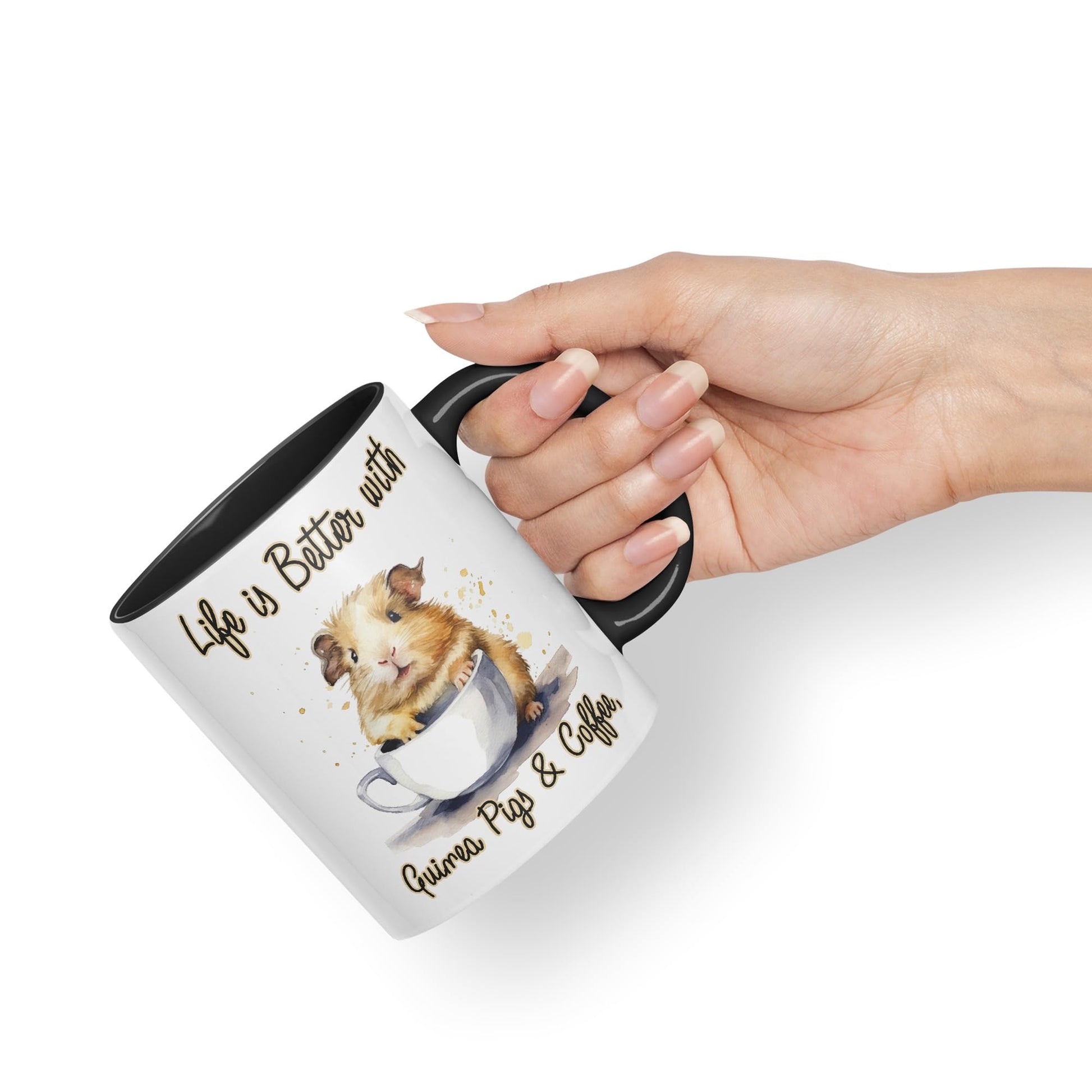 Life is Better with Guinea Pigs & Coffee joke sarkasm sarcastic Ceramic Coloured Mug Cup for Tea Coffee Hot brew 330ml 11Oz Gift (Black)