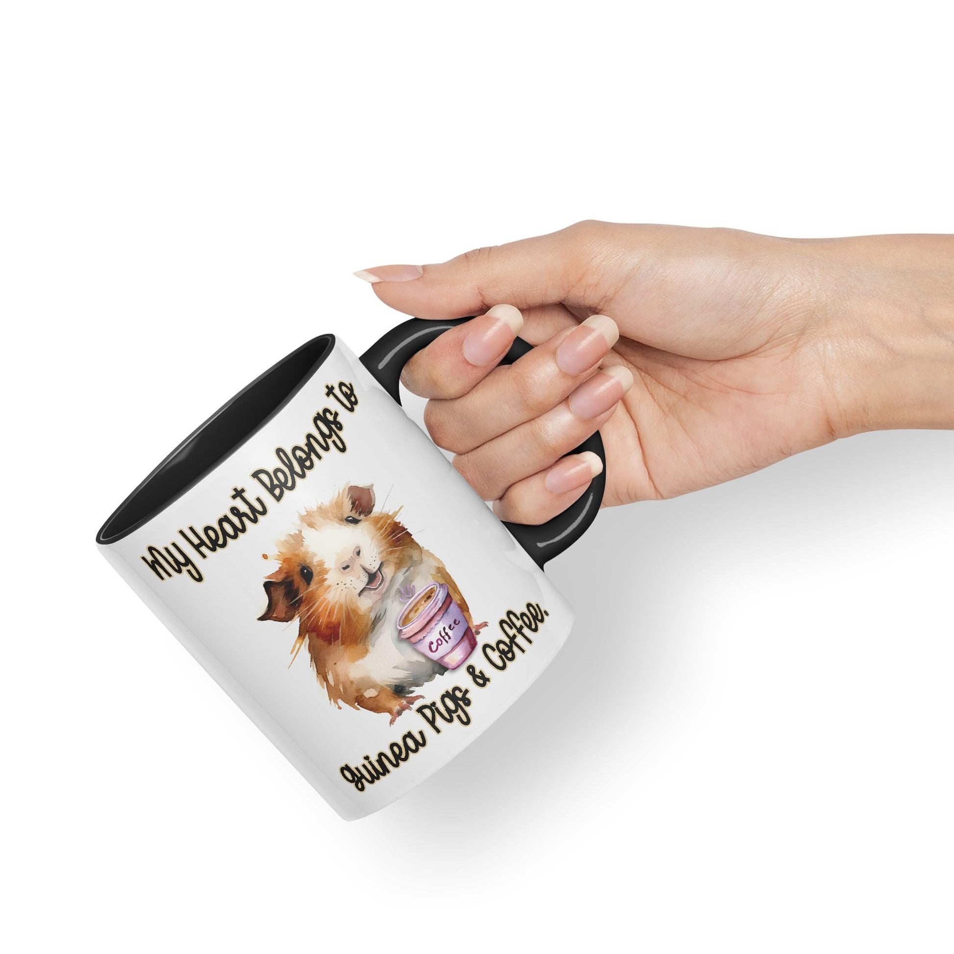 My Heart belongs to Guine Pig & Coffee, joke sarkasm sarcastic Ceramic Coloured Mug Cup for Tea Coffee Hot brew 330ml 11Oz Gift (Black)