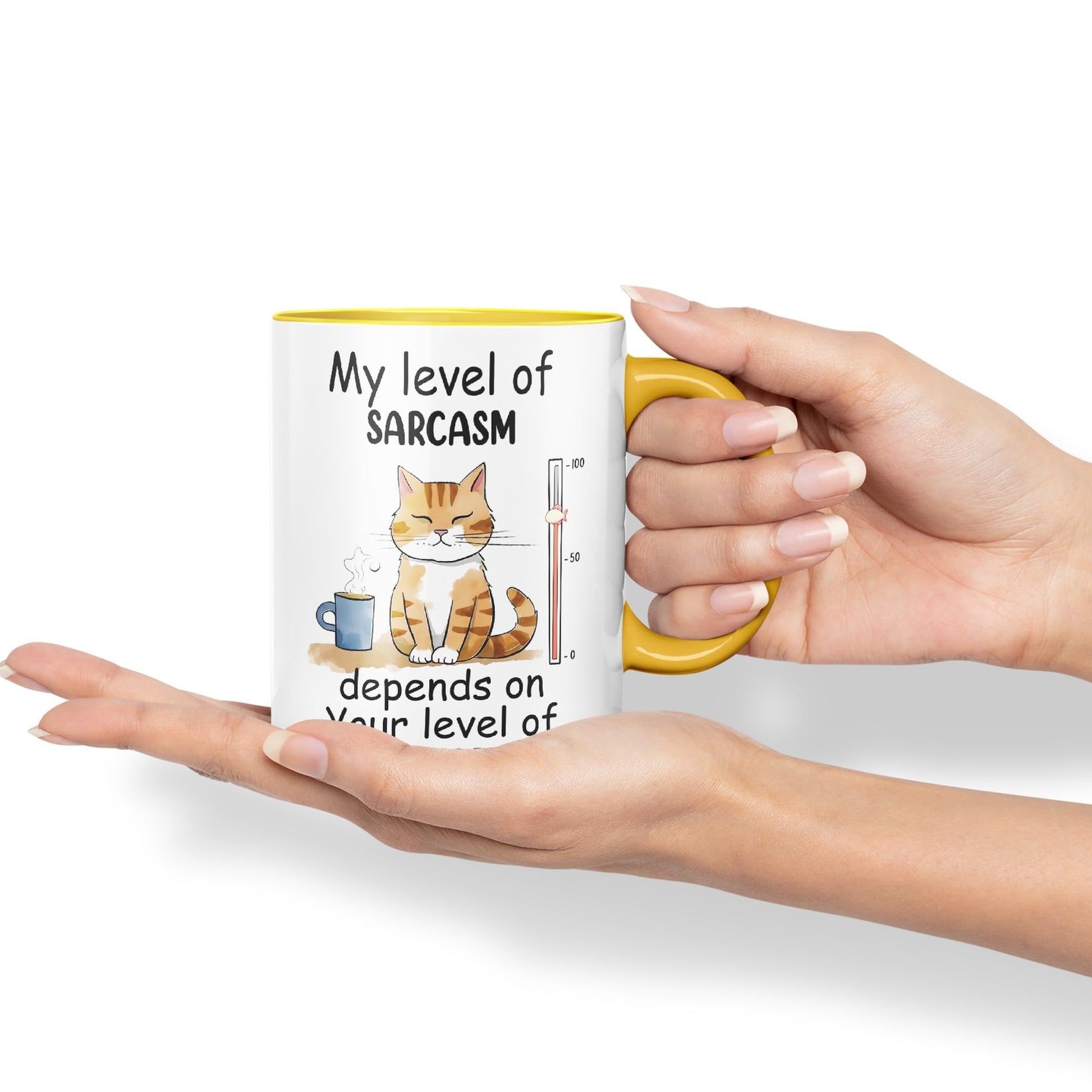 My level of SARCASM depends on Your level of Stupidity Cat Joke Ceramic Coloured Mug Cup for Tea Coffee Hot brew 330ml 11Oz