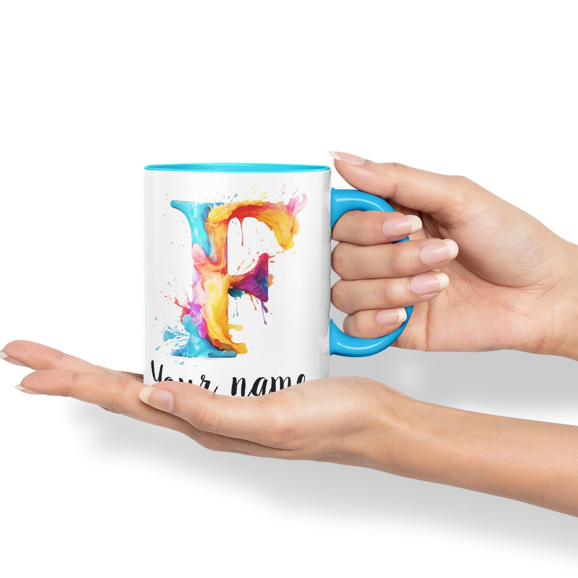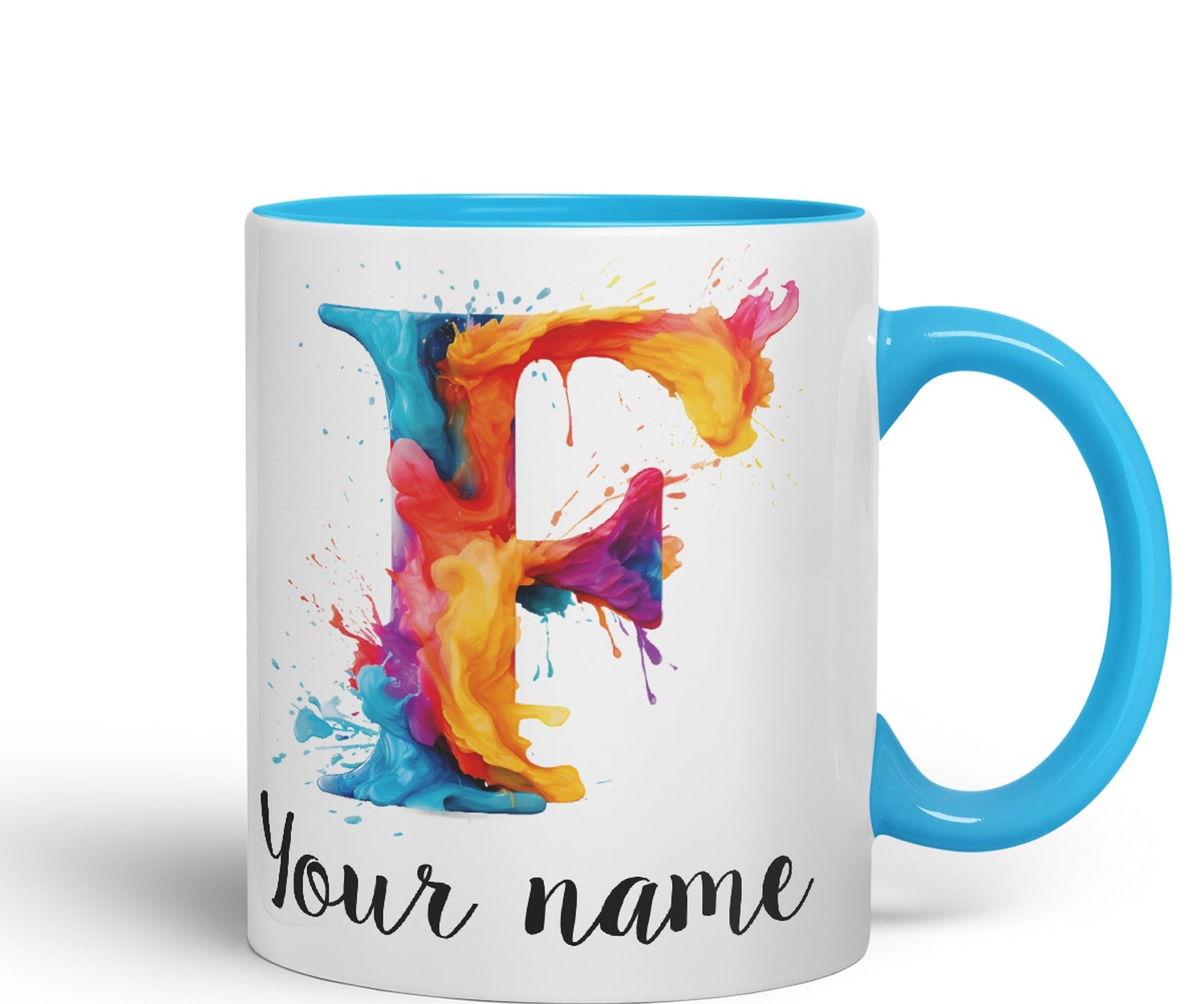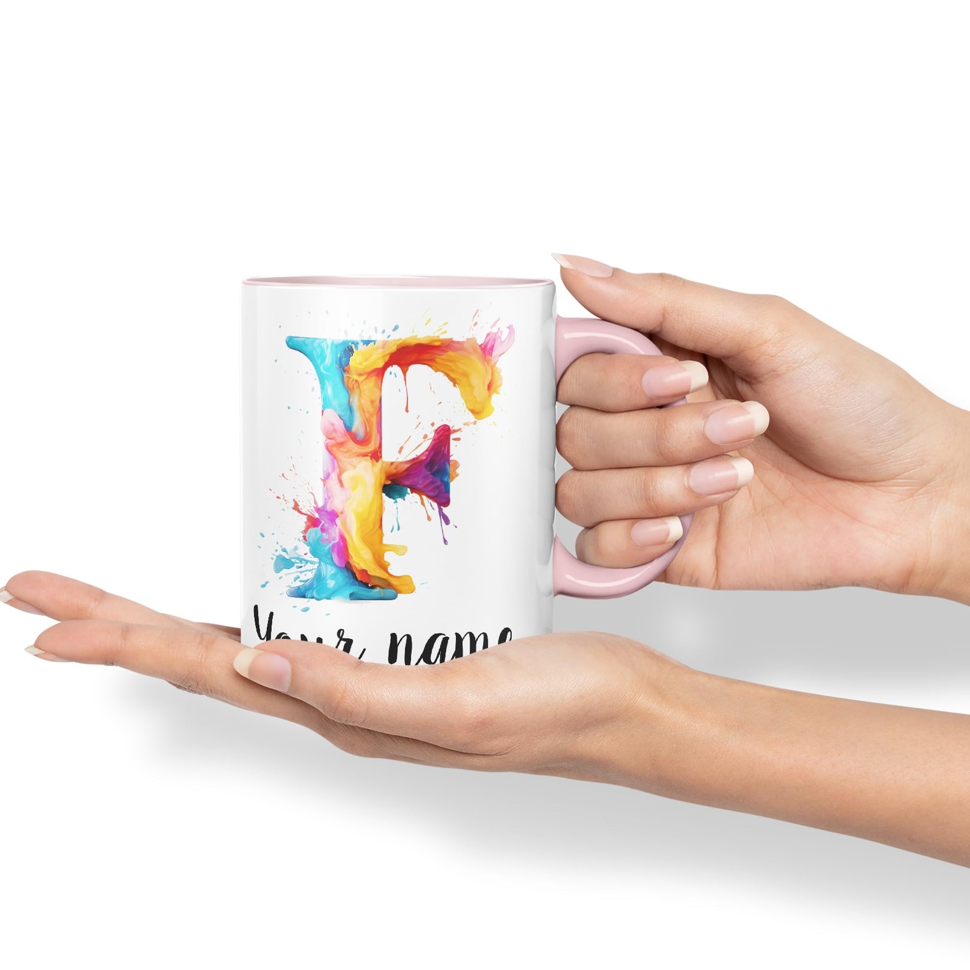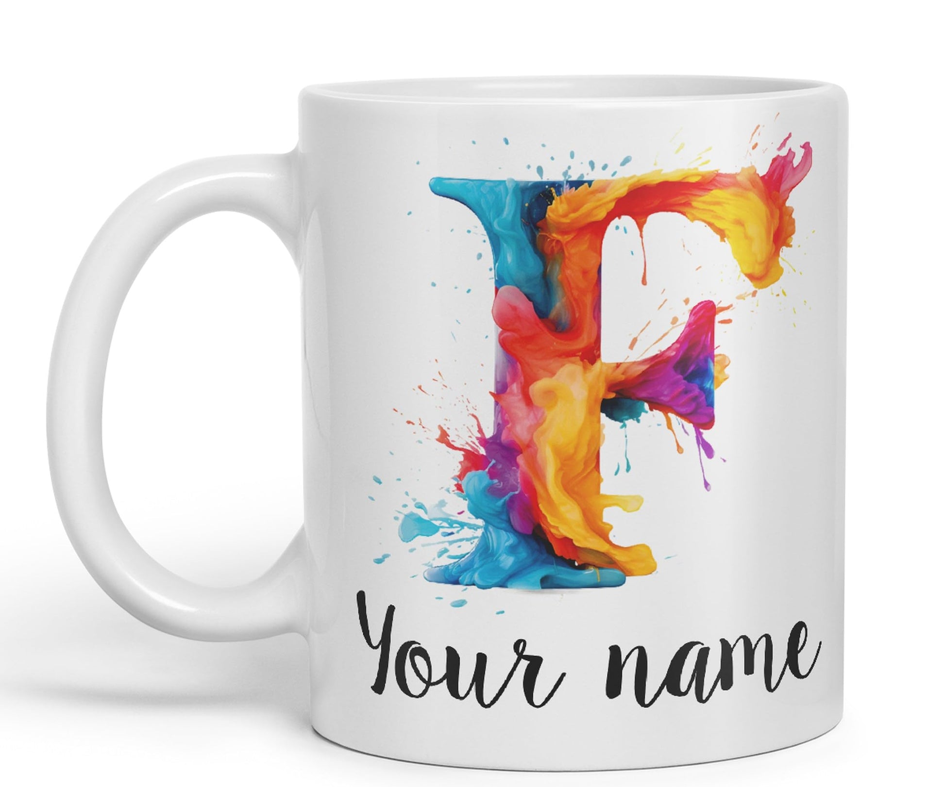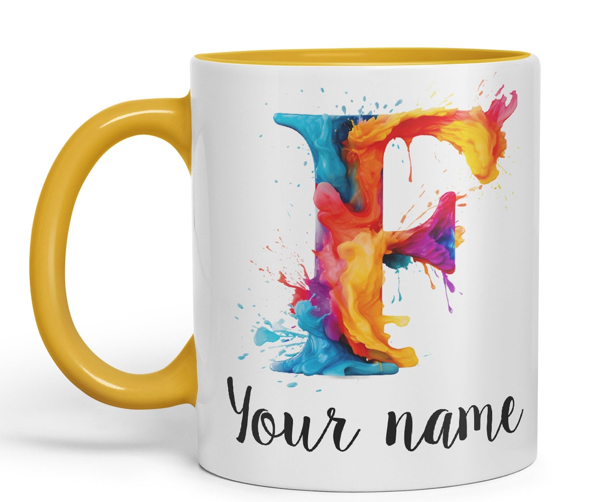 Personalised Letter F mug, Alphabet cusomized custom your Letter F Monogram watercolour Ceramic Coloured Mug Cup for Tea Coffee Hot brew 330ml 11Oz Gift