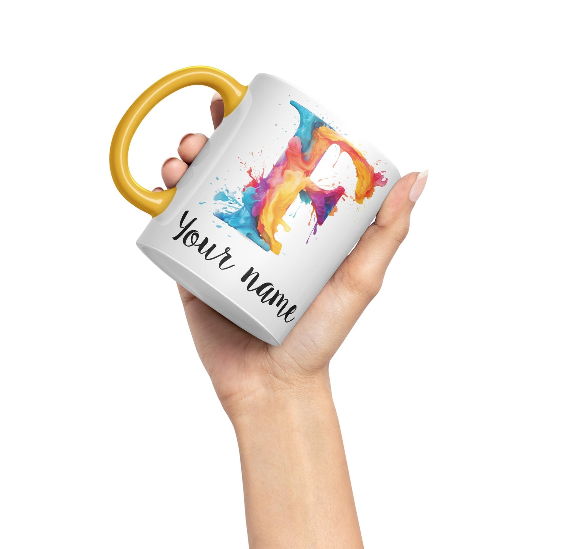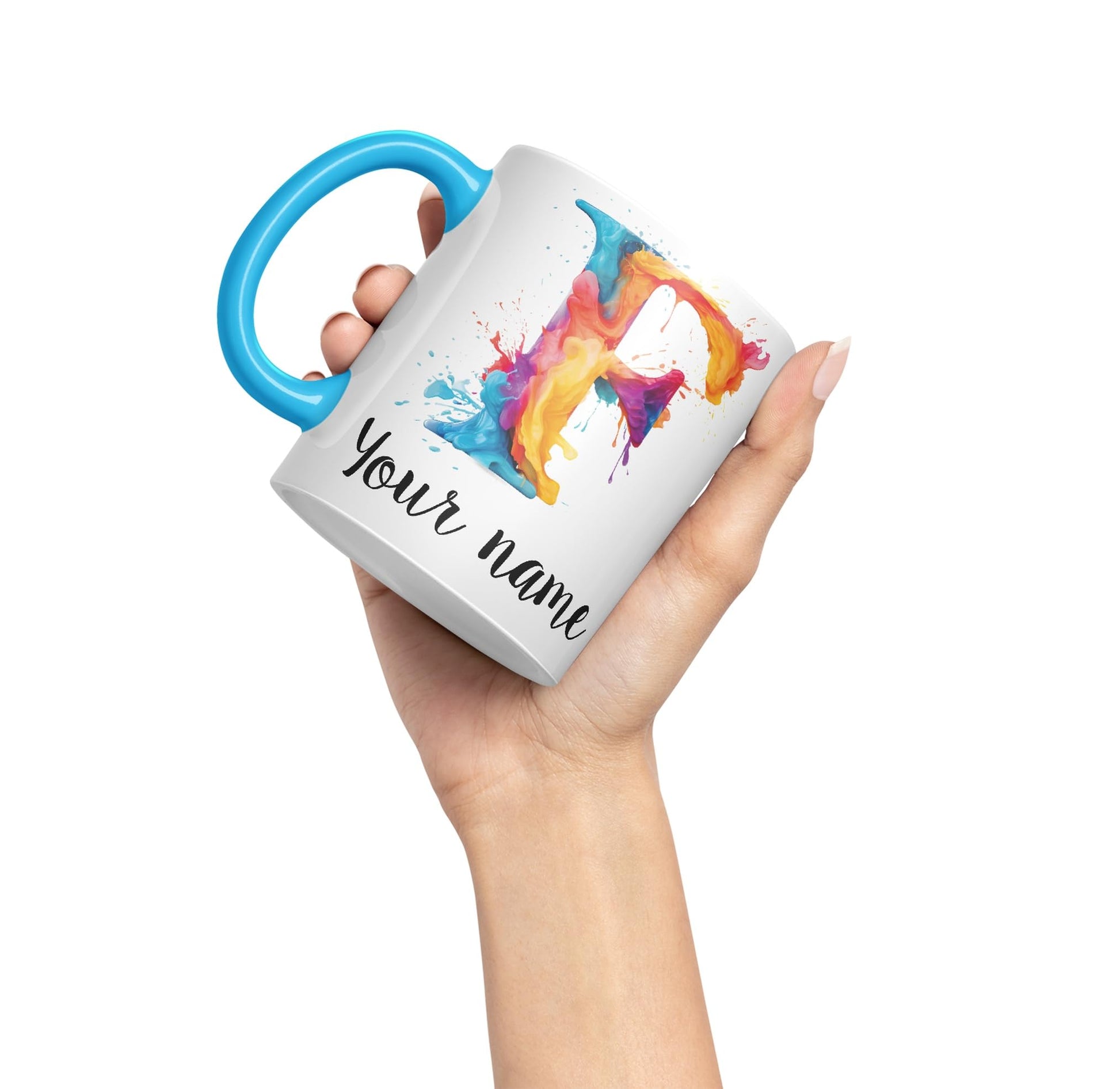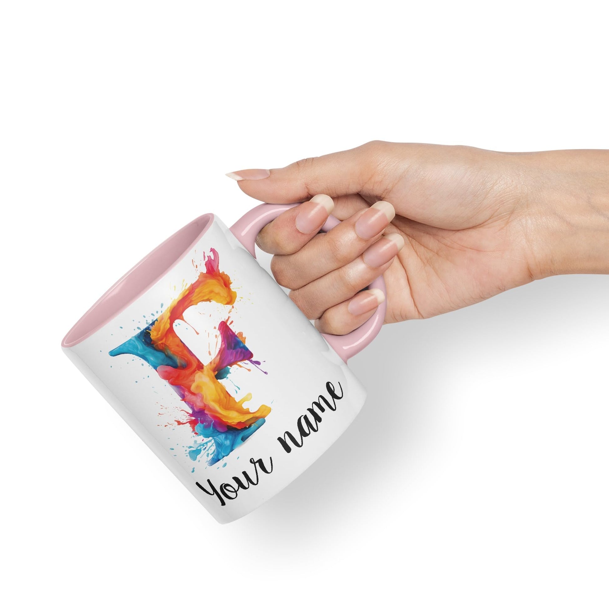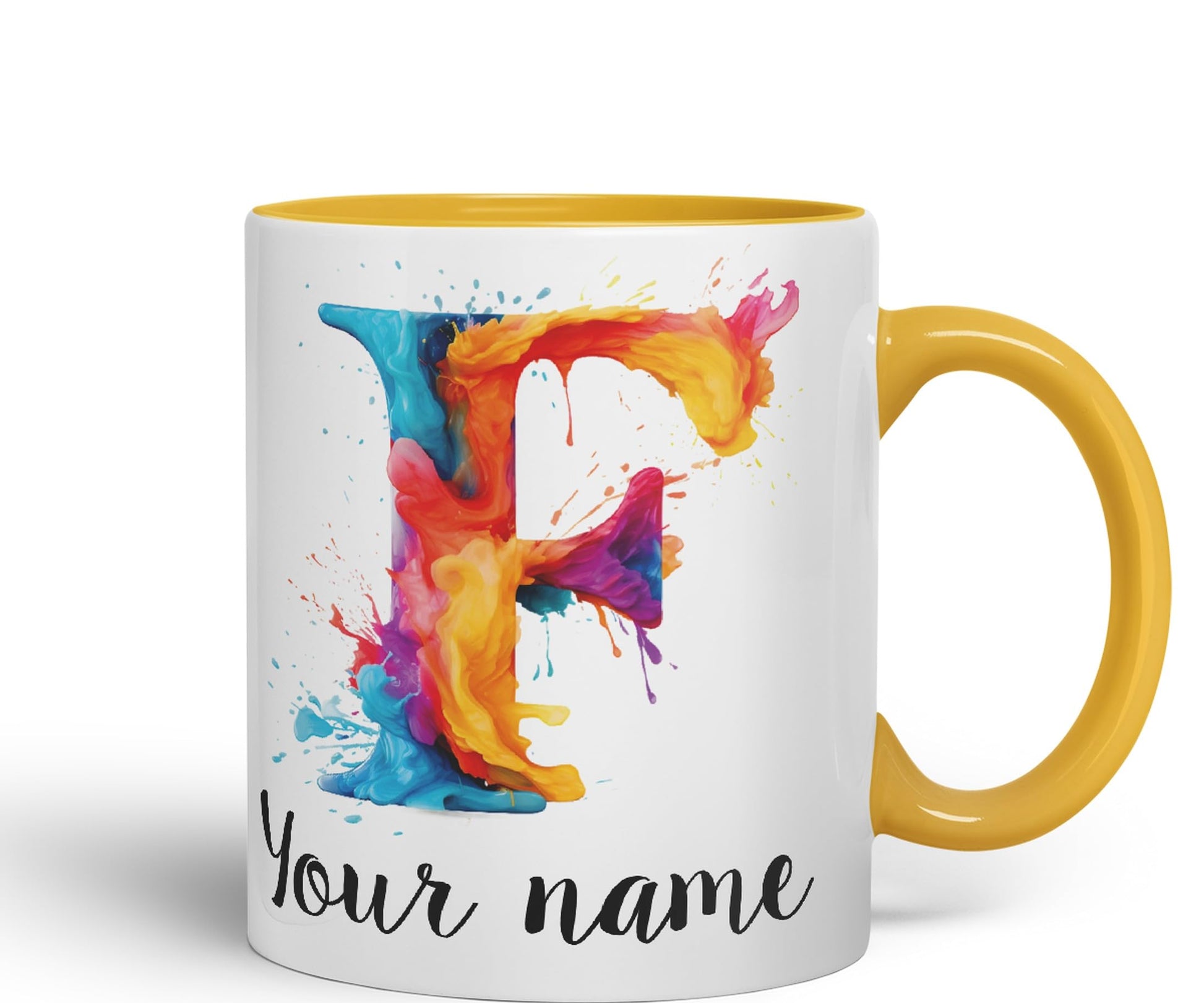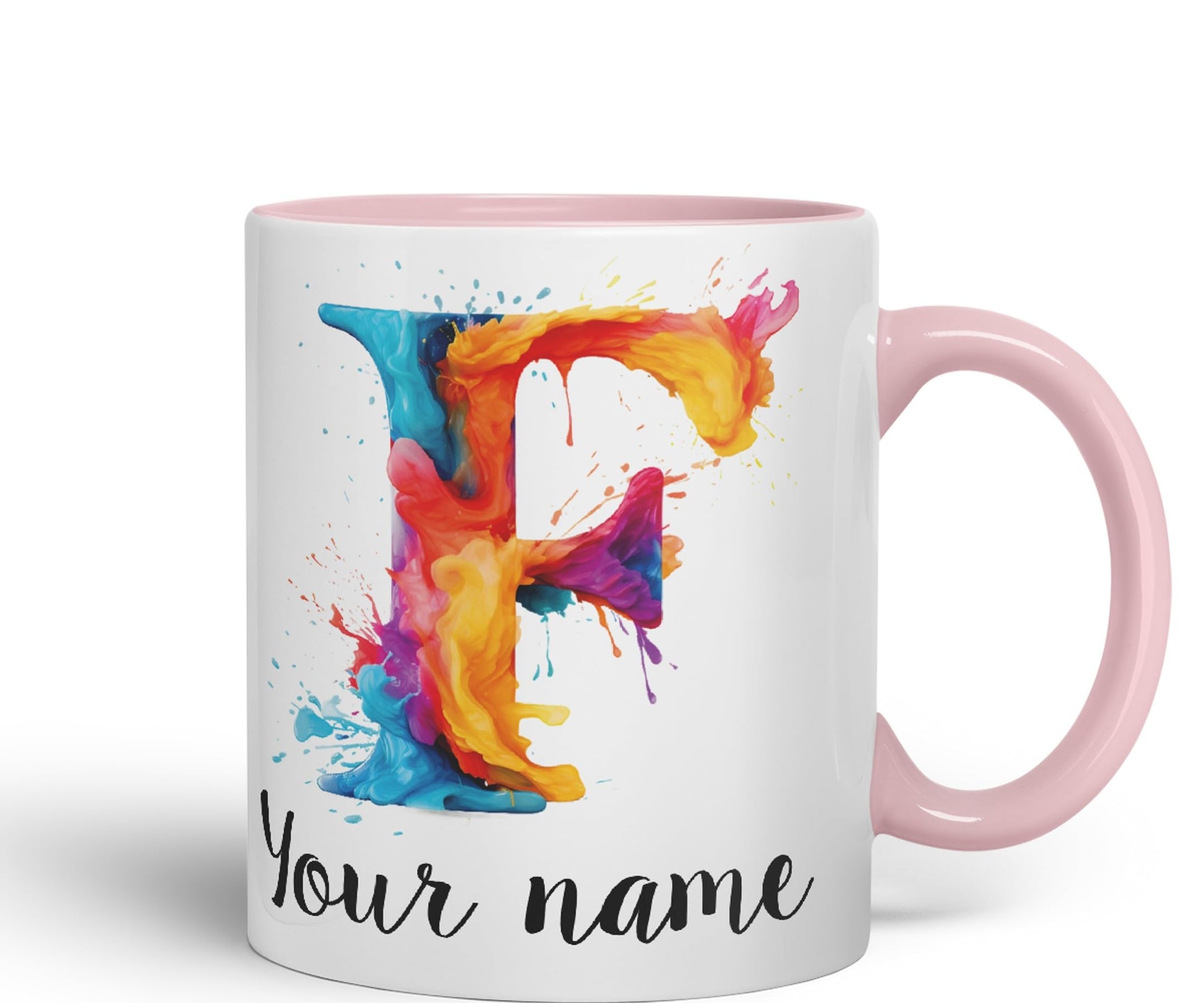 Personalised Letter F mug, Alphabet cusomized custom your Letter F Monogram watercolour Ceramic Coloured Mug Cup for Tea Coffee Hot brew 330ml 11Oz Gift