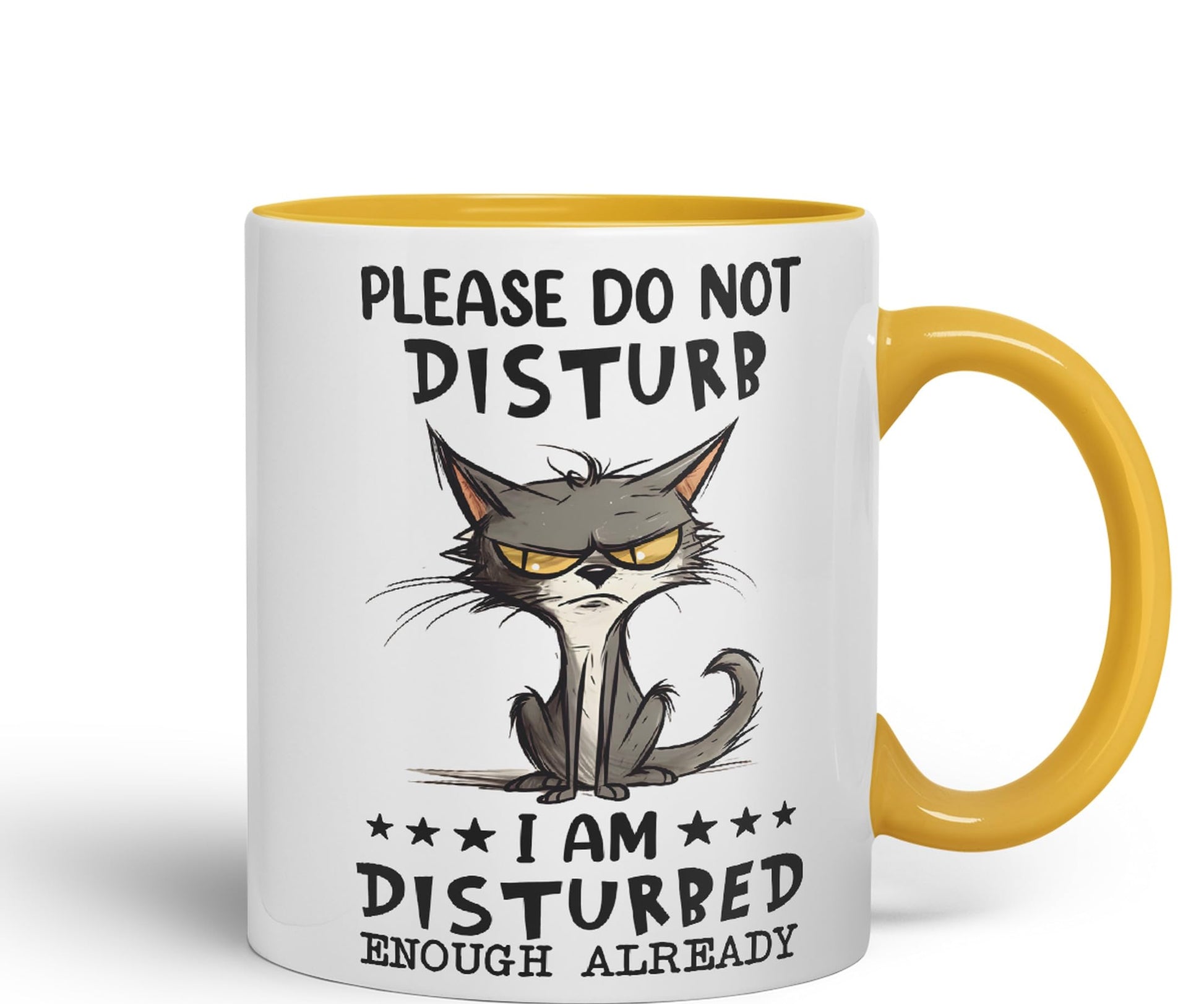 Please Do Not Disturb, I am Disturbed Enough Already Cat Joke Ceramic Coloured Mug Cup for Tea Coffee Hot Brew 330ml 11Oz