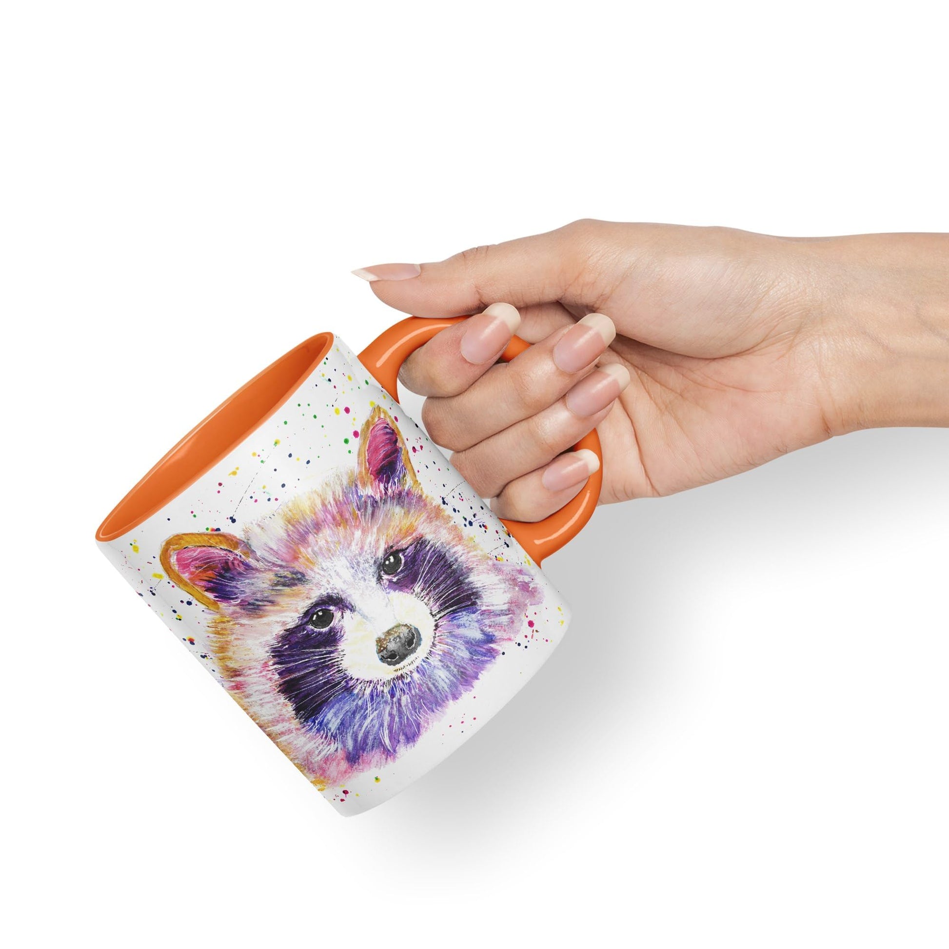 Racoon animals Watercolour Ceramic Coloured Mug Cup for Tea Coffee Hot brew 330ml 11Oz Gift (orange)