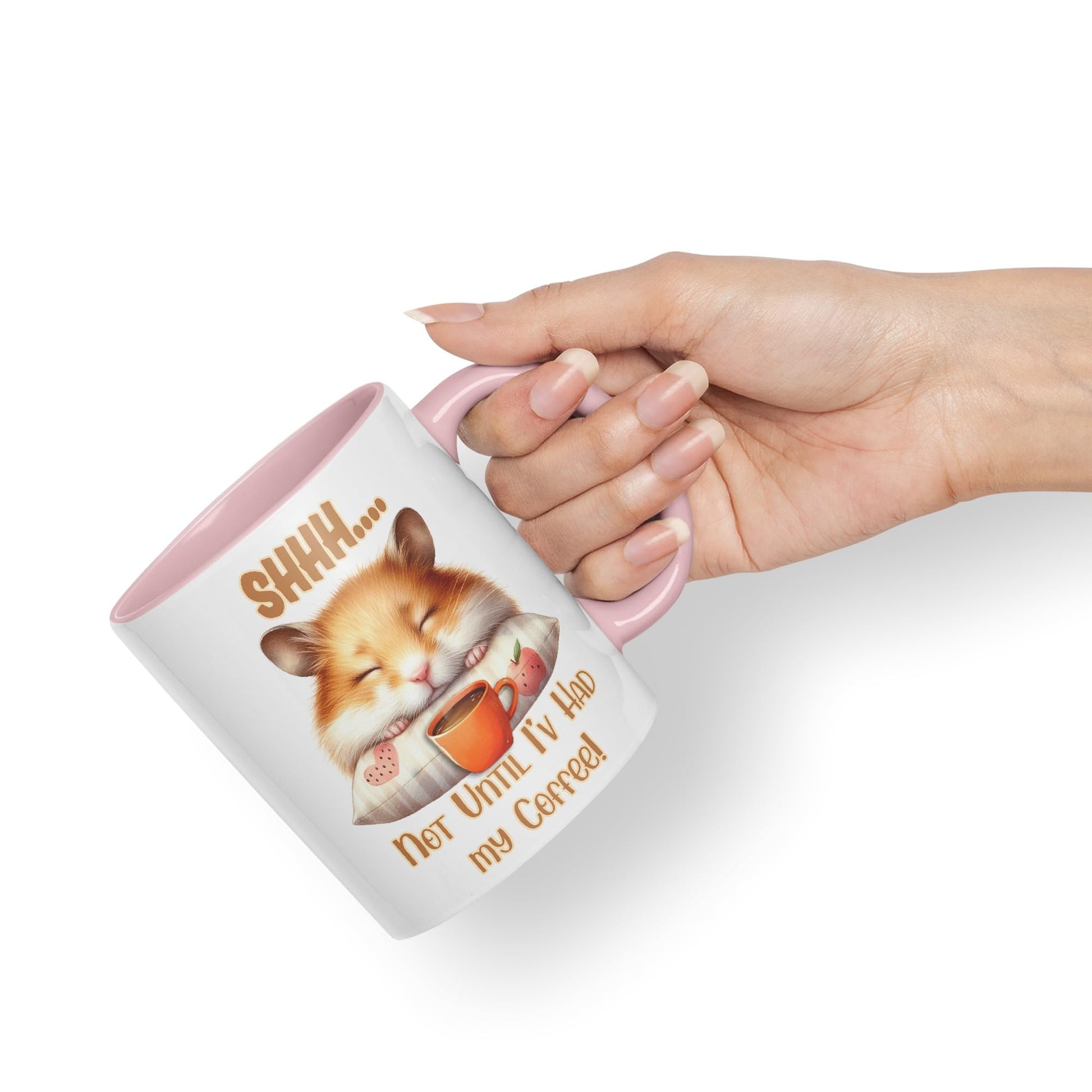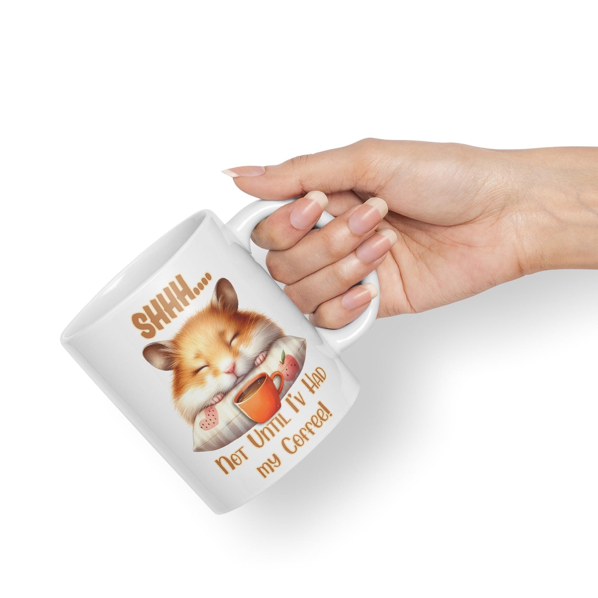 Shhh.. Not Until I'v Had My Coffee Hamster Joke sarkasm Sarcastic Ceramic Coloured Mug Cup for Tea Coffee Hot Brew 330ml 11Oz Gift