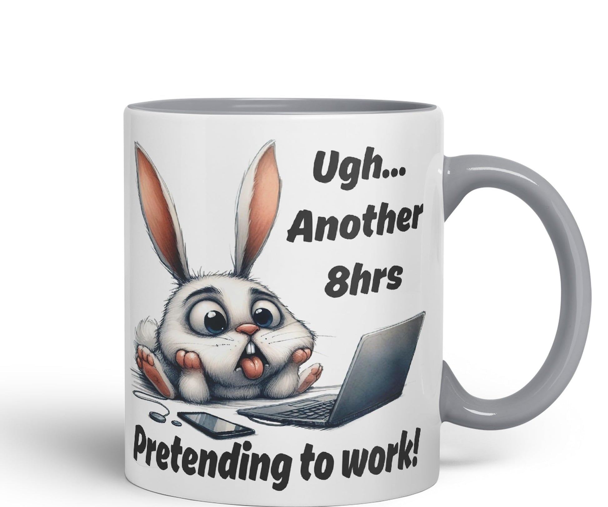 Ugh.. Another 8hrs Pretending to Work Rabbit Joke sarkasm Sarcastic Ceramic Coloured Mug Cup for Tea Coffee Hot Brew 330ml 11Oz Gift