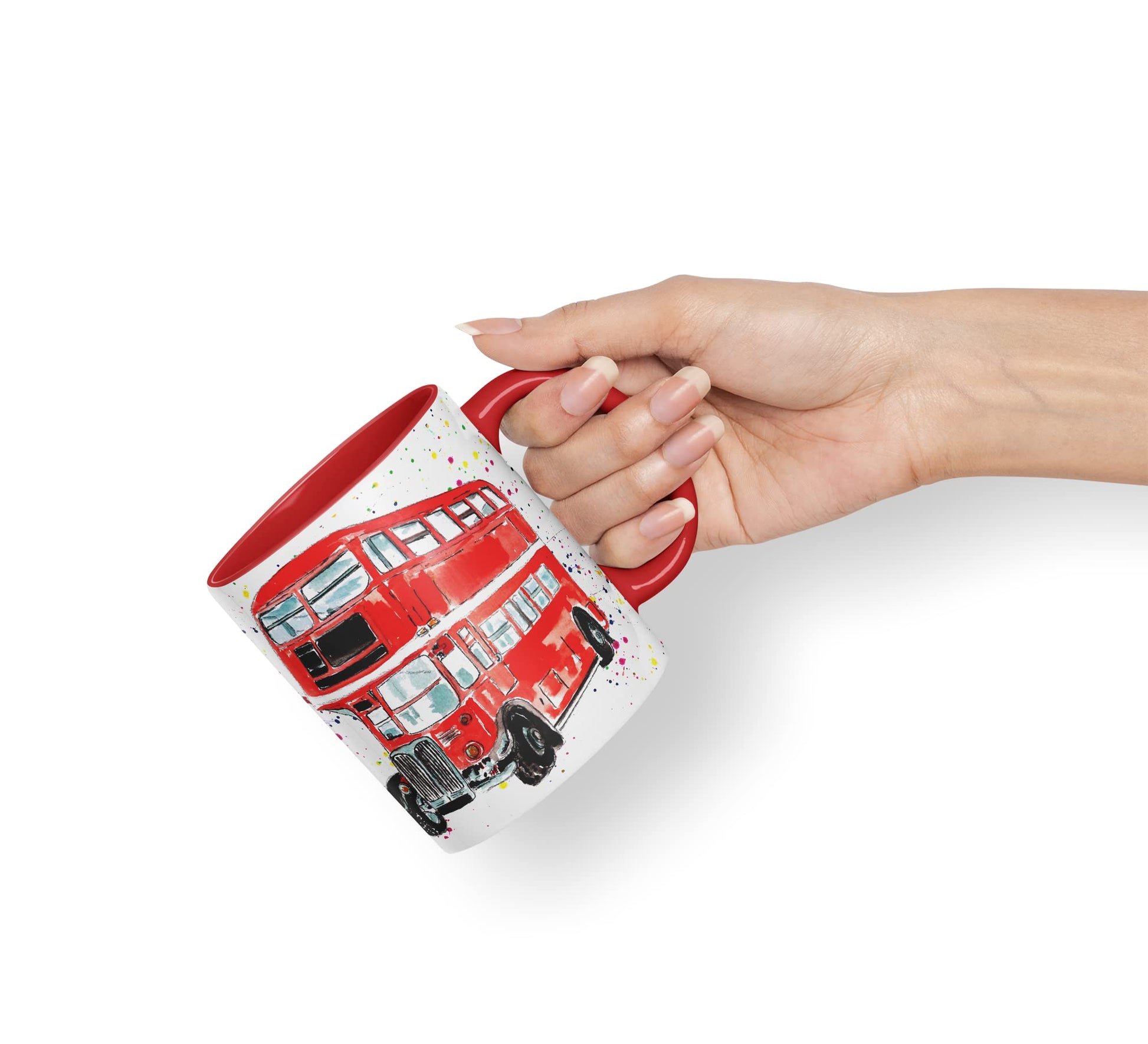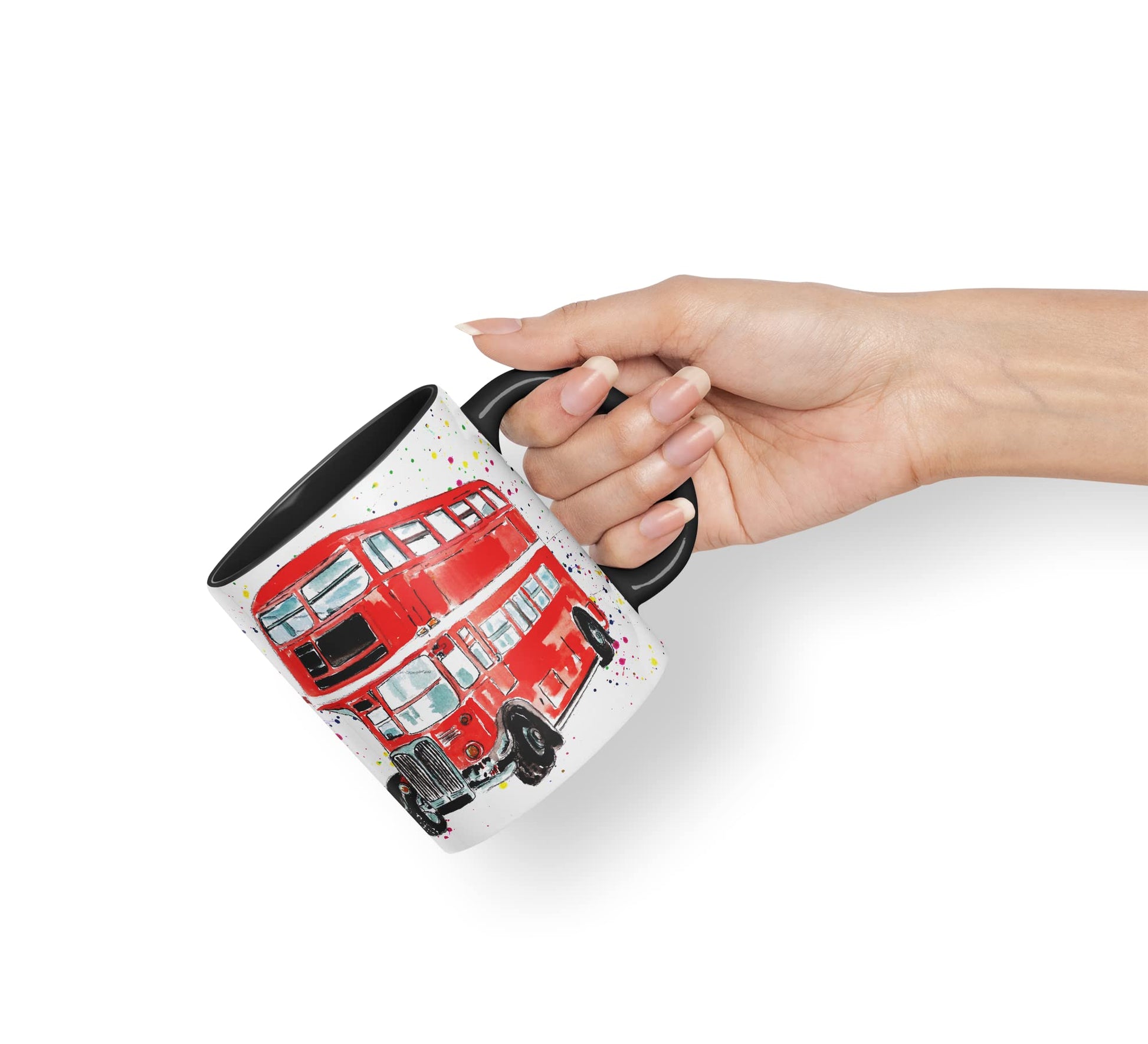 Vixar Bus Classic London Busses Red Watercolour Art Coloured Mug Cup Gift Birthday Work Office Tea Coffee