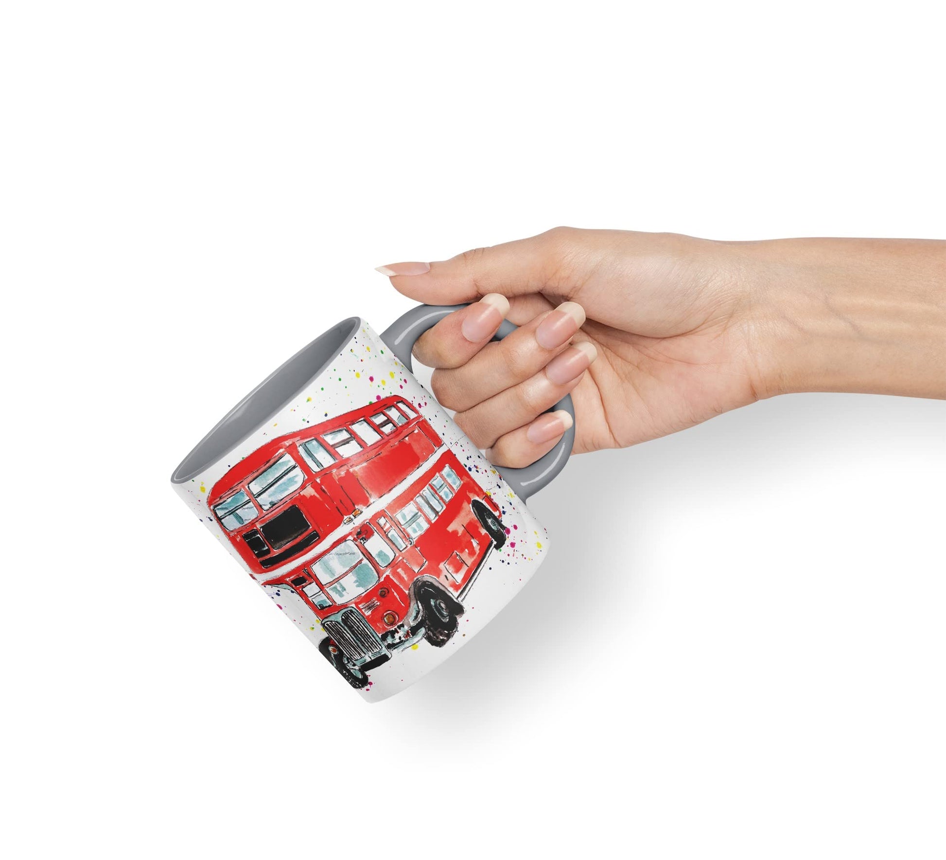 Bus Classic London Busses Red Watercolour Art Coloured Mug Cup Gift Birthday Work Office Tea Coffee