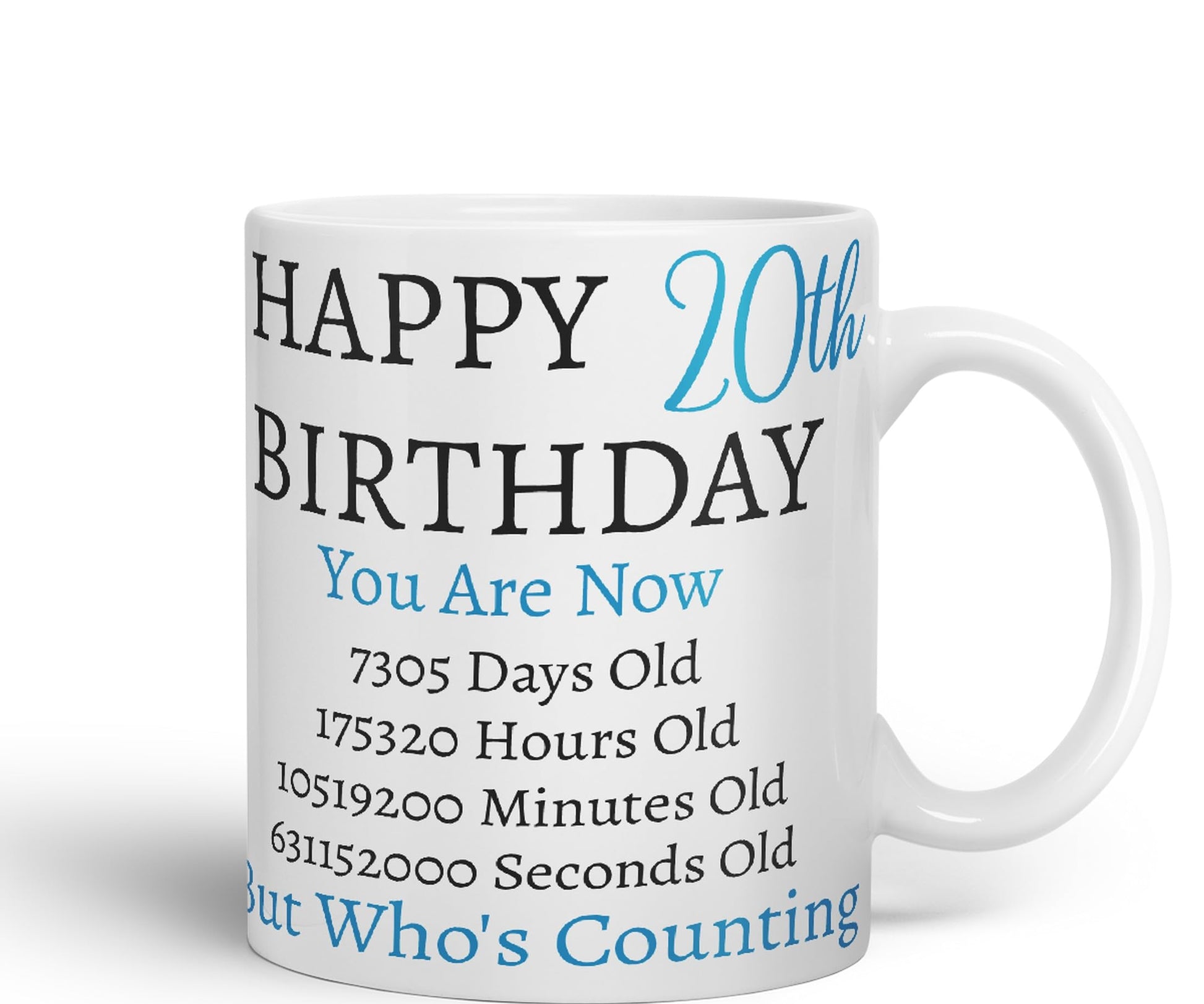But Who's Counting Happy 20th Birthday Ceramic Coloured Mug Cup Gift days Hours minutes Home Office You Are Now (Blue version)