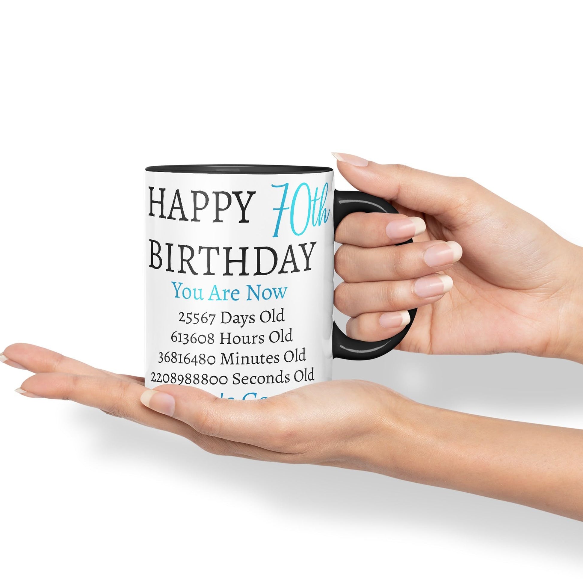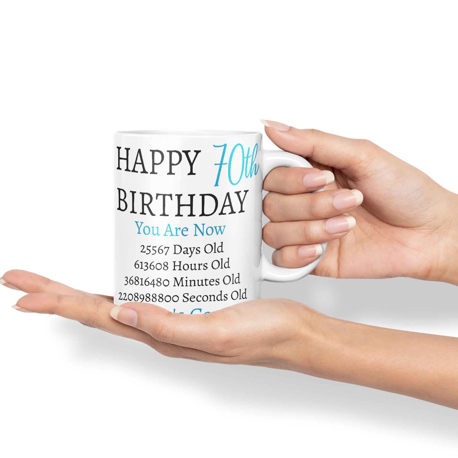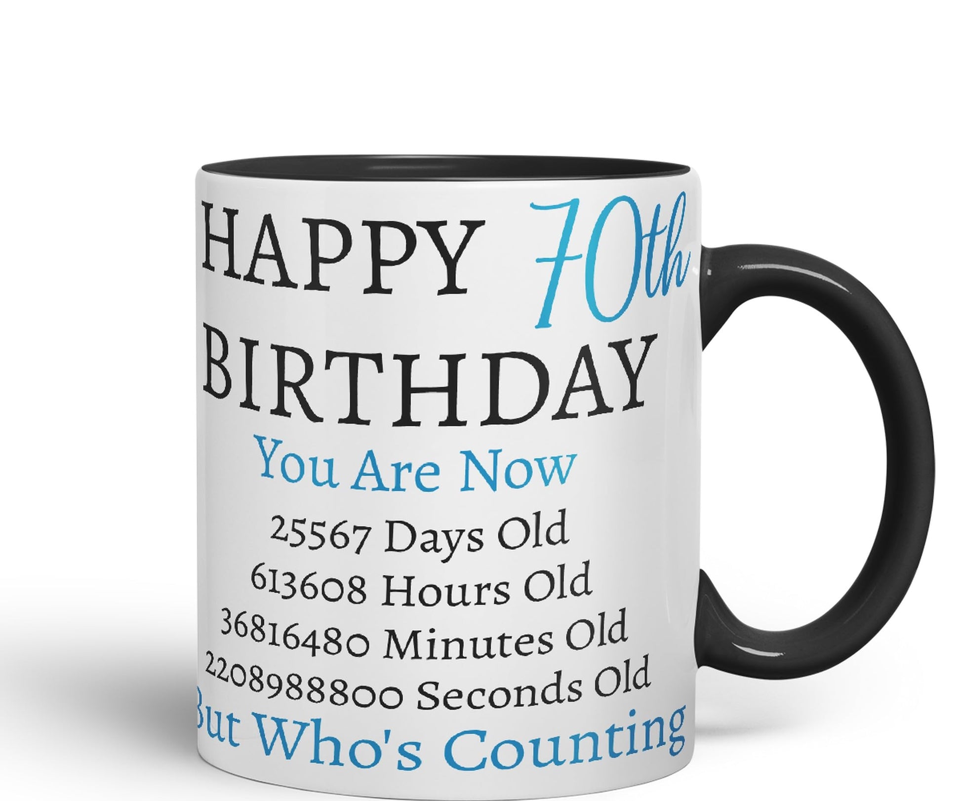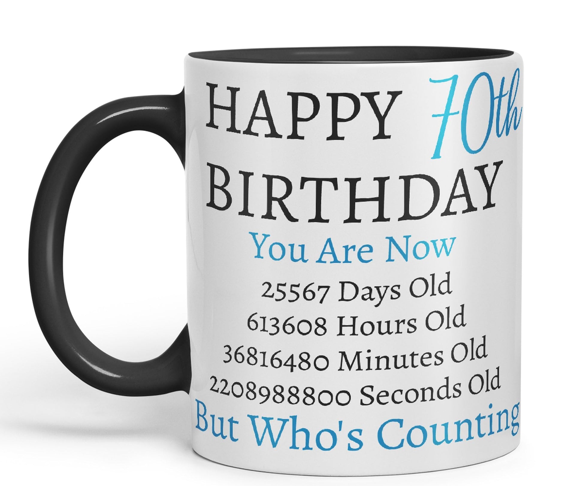 But Who's Counting Happy 70th Birthday Ceramic Coloured Mug Cup Gift days Hours minutes Home Office You Are Now (Blue version)