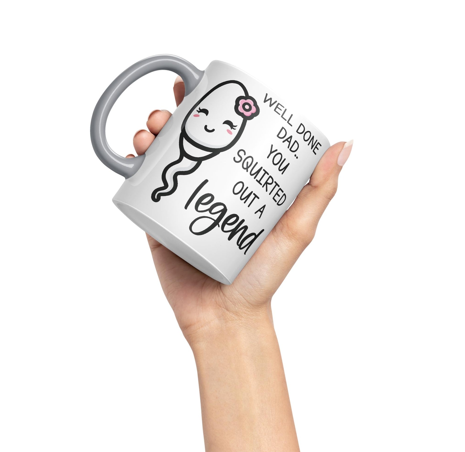Dads little girl fathers day Well done Dad You Squirted out a legend Ceramic Coloured Mug Cup Gift Tea Coffee Christmas Office Home Joke Sarcastic