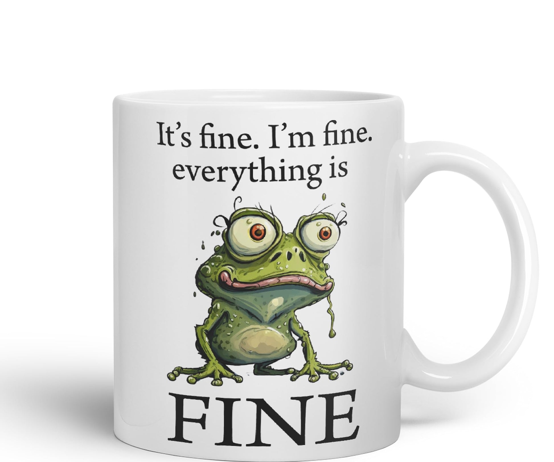 Vixar Frog It's fine I'm fine Everything is fine Joke Sarcastic Ceramic Mug Coloured Mug Cup Gift Tea Coffee Christmas