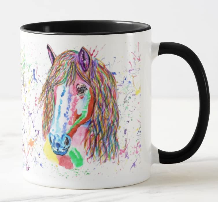 Vixar Horse Farm Animal Hand Painted Design Watercolour Art Coloured Mug Cup Gift Birthday Work Office Christmas Tea Coffee