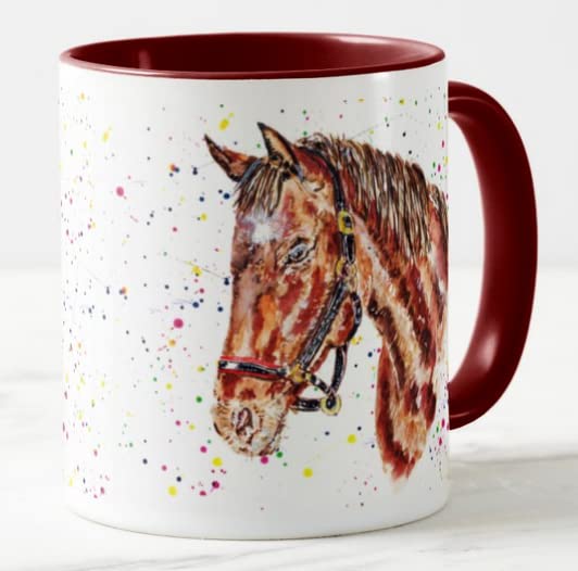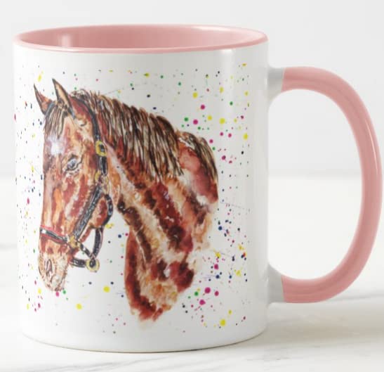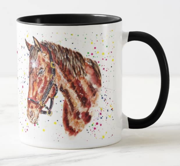 Vixar Horse Hand Pain Animal Farm Watercolour Coloured Mug Cup Gift Birthday Work Office Christmas Tea Coffee