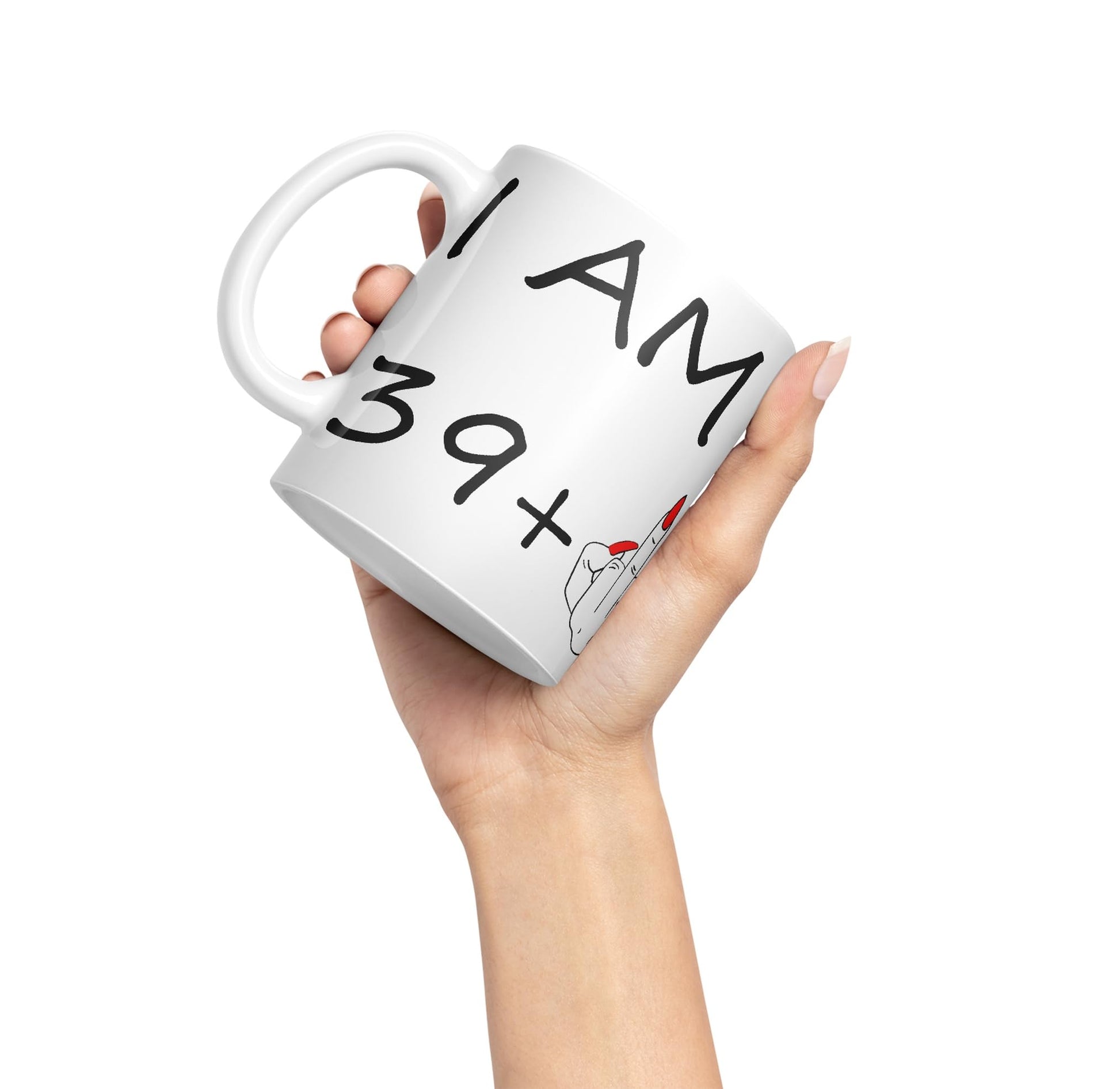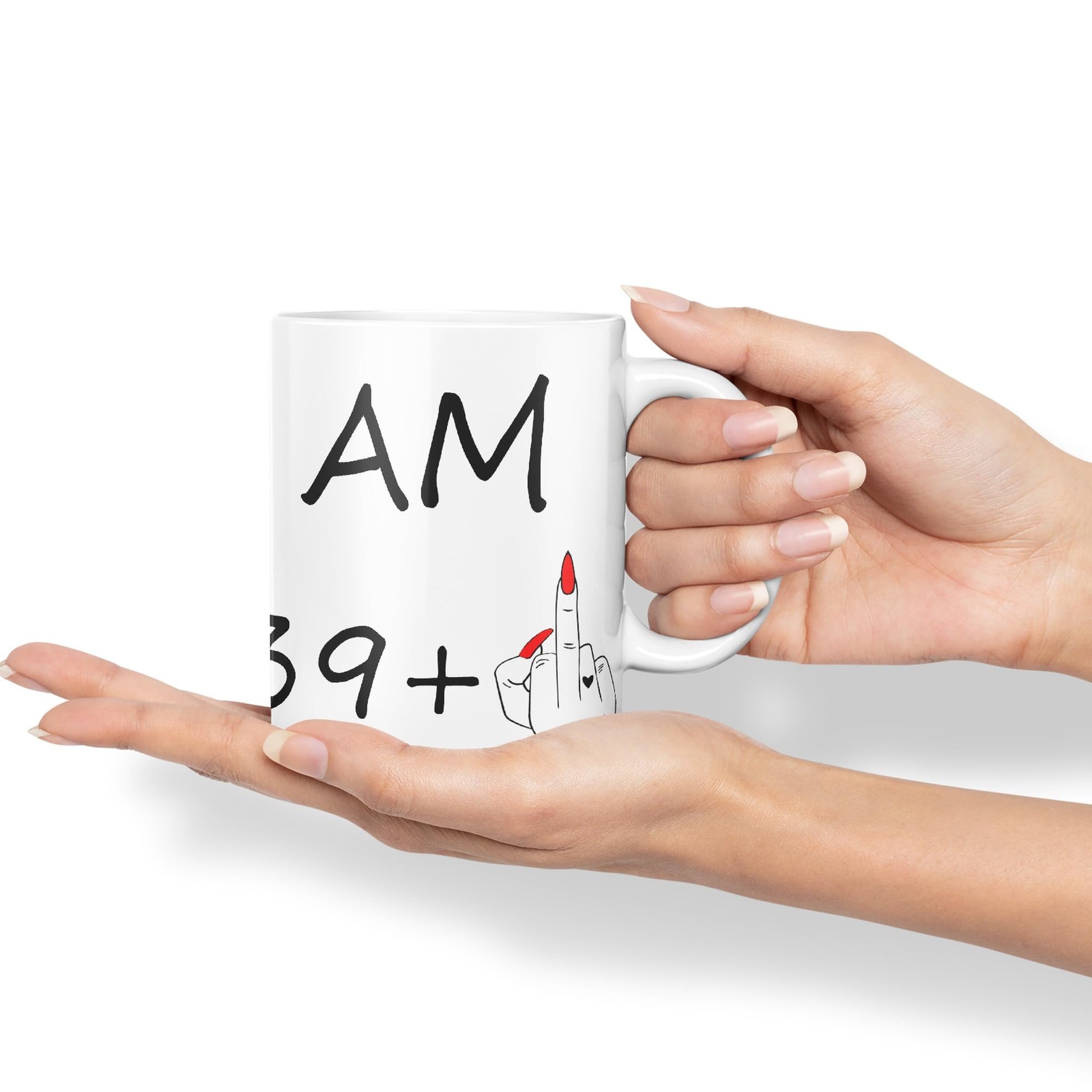 I am 39 + 1 Woman Hand 40th Birthday Gift idea, Ceramic Coloured Mug Cup Gift Coffee Tea Happy Birthday Turning 40 Years Old as a Joke Celebration