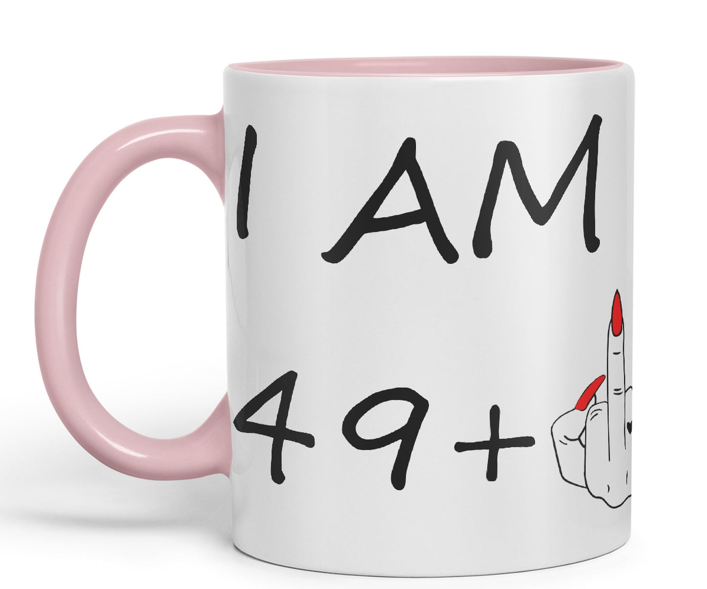 I am 49 + 1 Woman Hand Ceramic 330 ml, 11oz Coloured Mug Cup Gift Coffee Tea Happy Birthday Turning 50 Years Old as a Joke Celebration 50th Birthday Gift idea