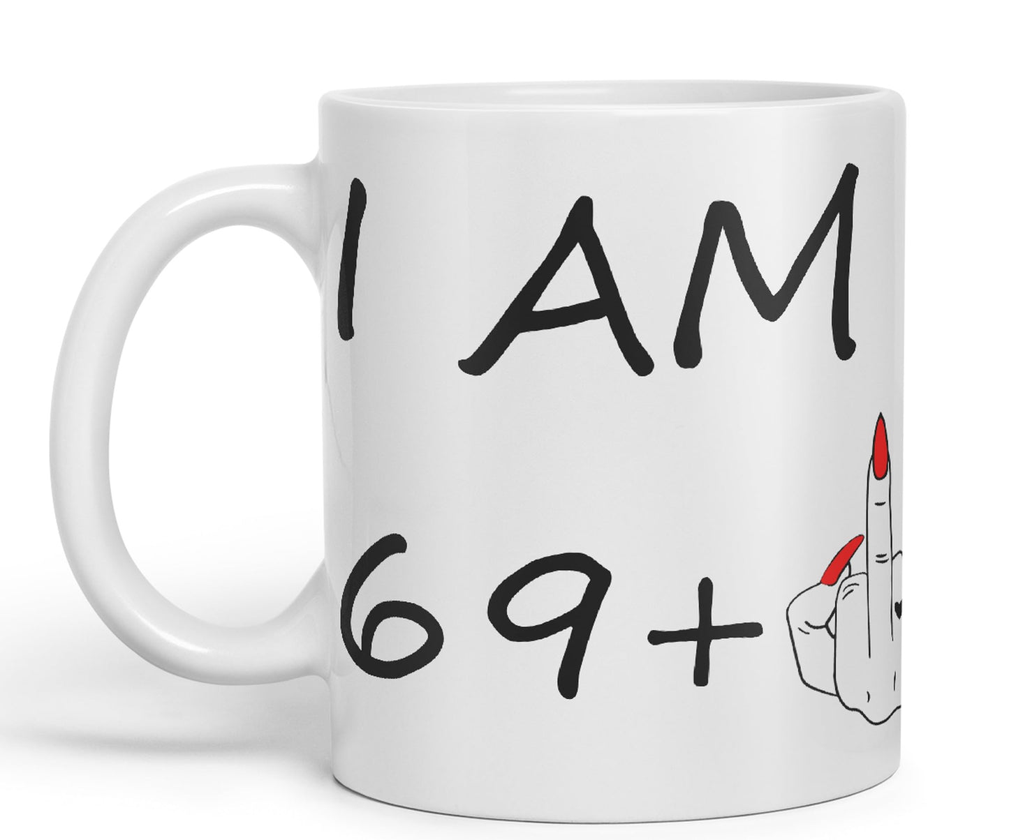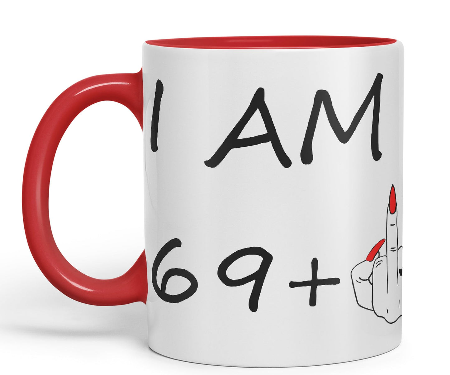 I am 69 + 1 Woman Hand Ceramic 330 ml, 11oz Coloured Mug Cup Gift Coffee Tea Happy Birthday Turning 70 Years Old as a Joke Celebration 70th Birthday Gift idea