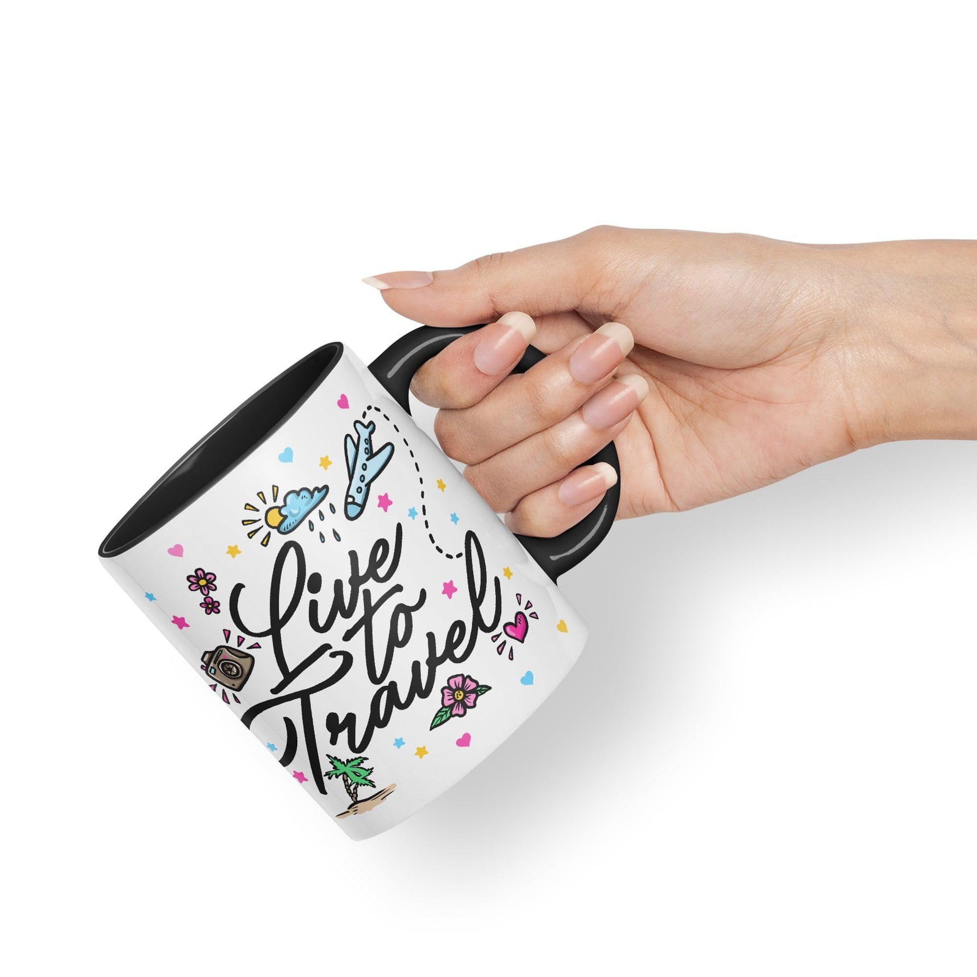 Vixar I Love Travel Live to Travel Coloured Ceramic Mug Cup Gift 330ml 11oz Work Office Tea Coffee Gift Traveler