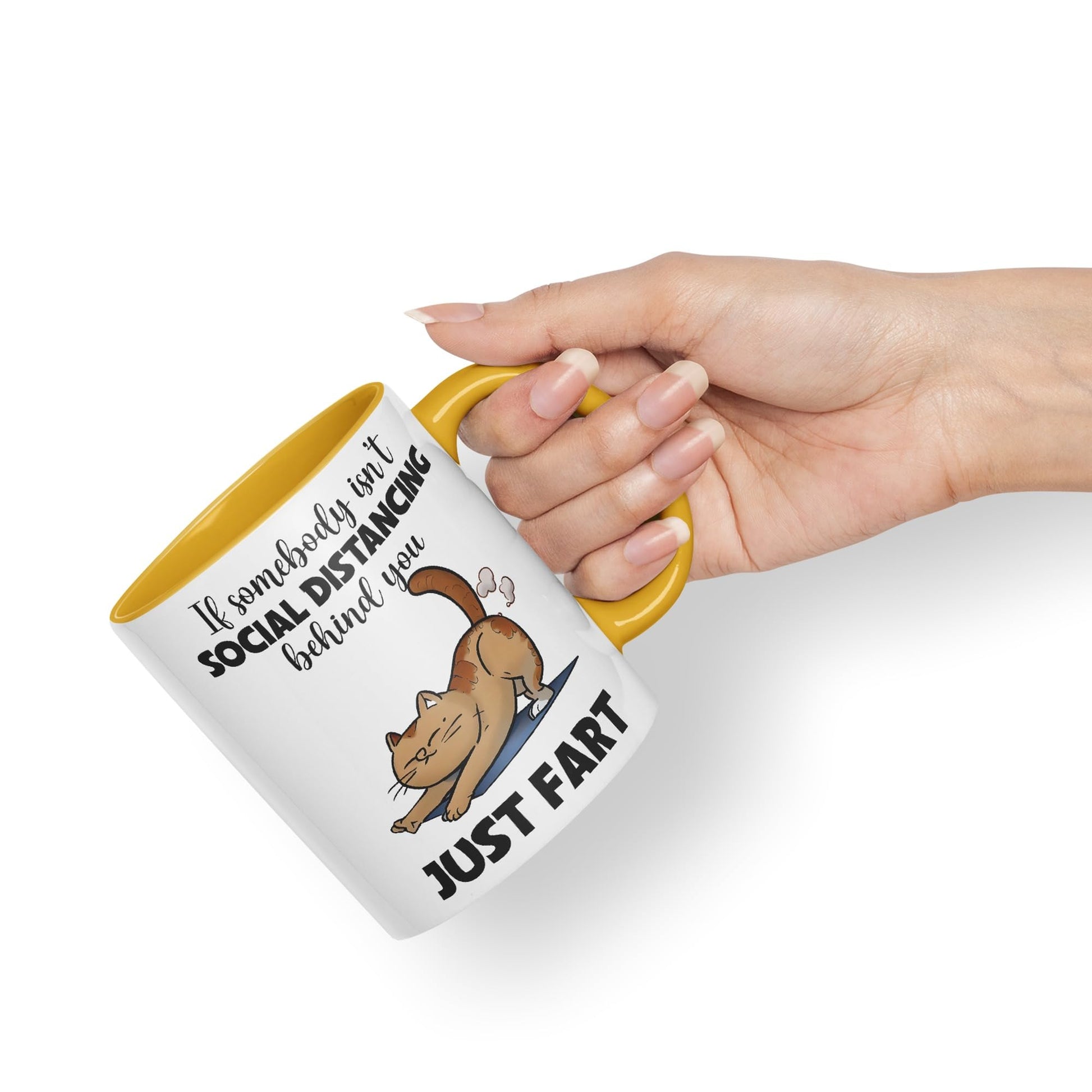 If somebody isn't Social Distancing behind you Just Fart cats Sarcastic Joke Ceramic Coloured Mug Cup for Tea Coffee Hot brew 330ml 11oz