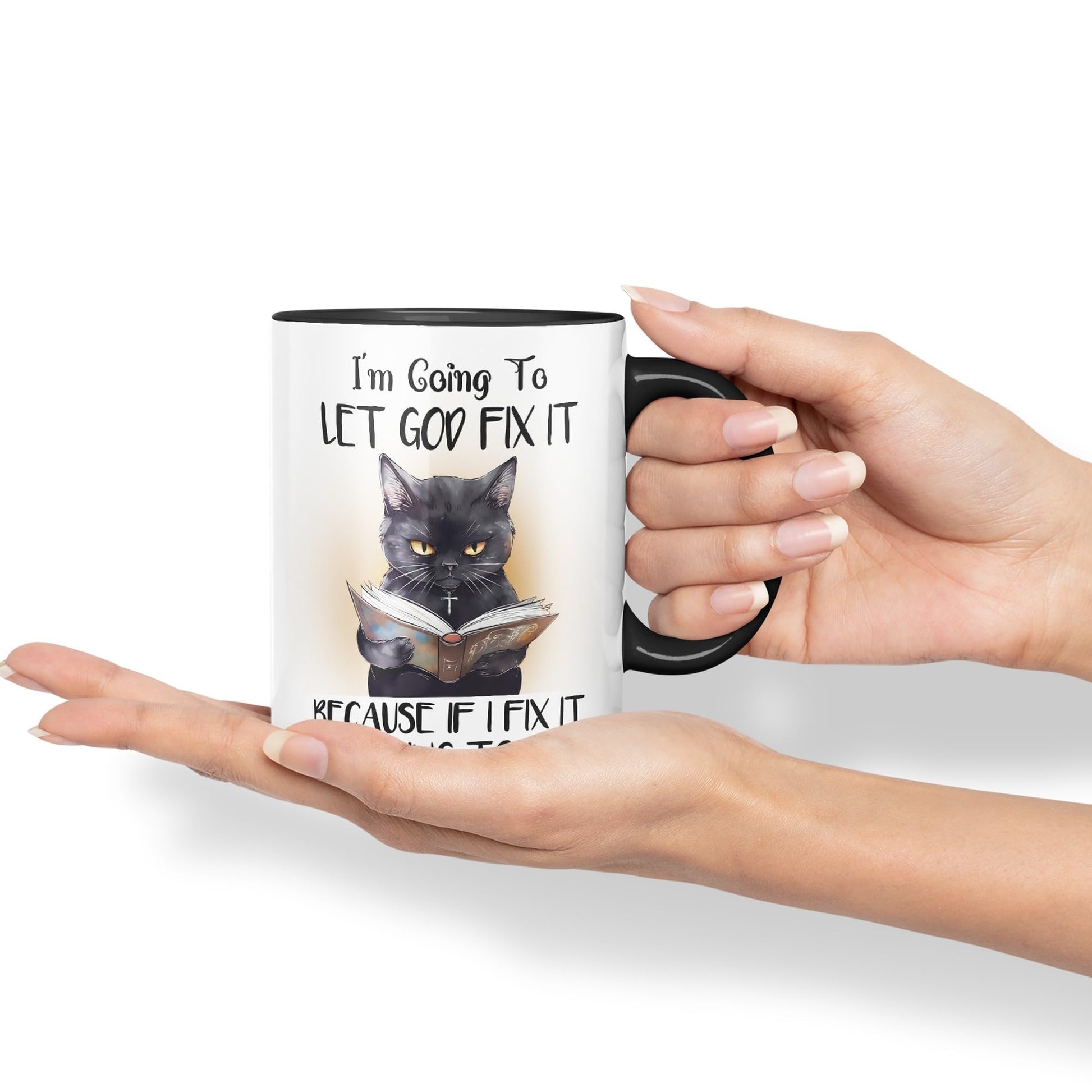 Vixar I'm Going to LET GOD FIX IT, Cats Sarcastic Joke Ceramic Coloured Mug Cup for Tea Coffee Hot Brew 330ml 11Oz