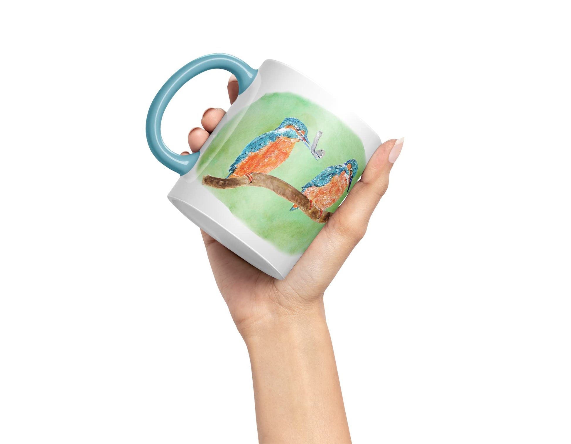 King fisher Kingfisher pair Bird animals Watercolour Art Coloured Mug Cup Gift Birthday Work Office Tea Coffee
