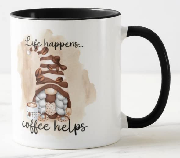 Vixar Life Happens. Coffee Helps Gnome Joke Novelty Coloured Mug Cup Gift Birthday Work Office Christmas Tea Coffee