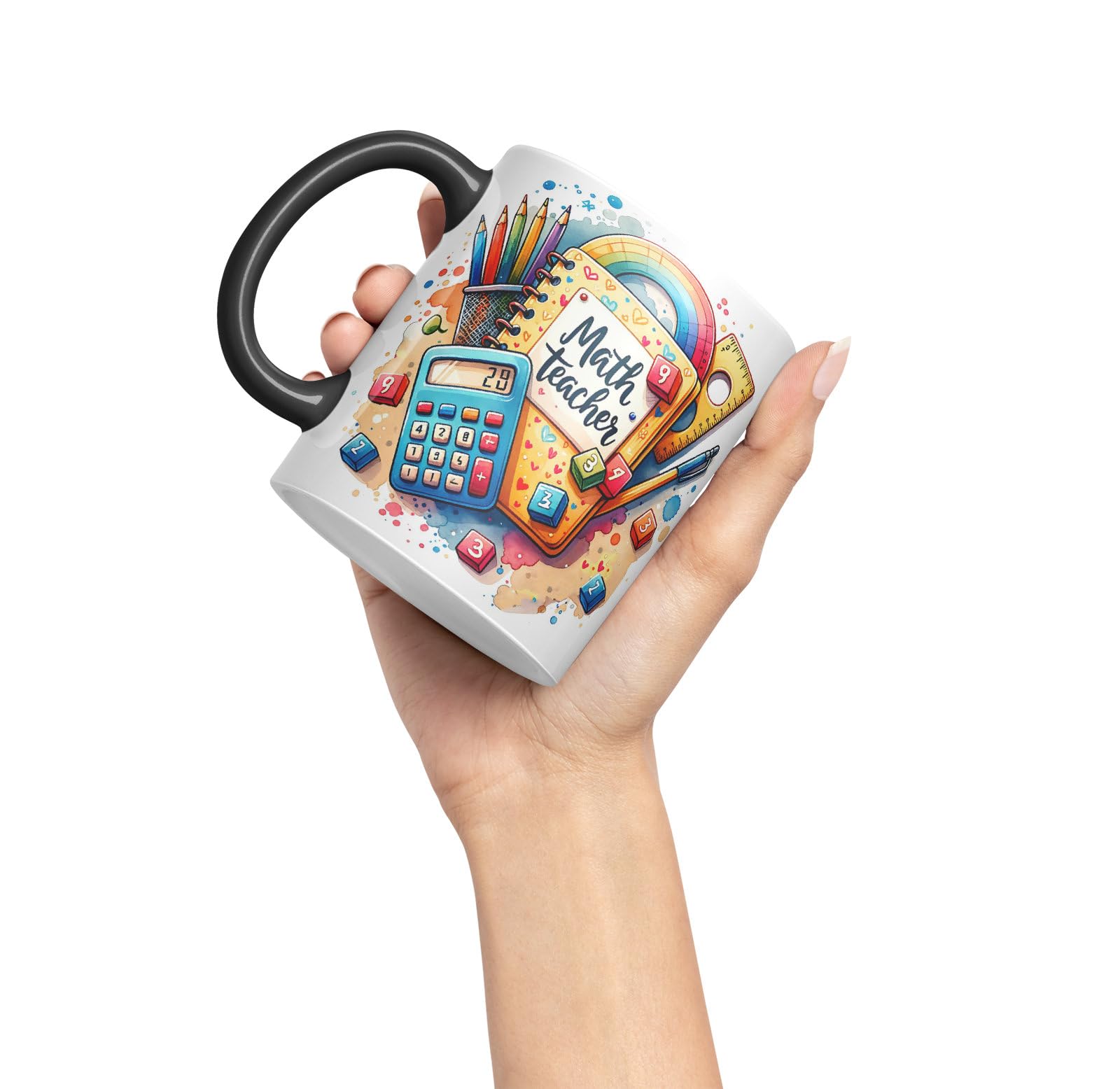 Math Teacher Mug Thank You, End of school gift Ceramic Coloured Mug Cup for Tea Coffee Hot brew 330ml 11Oz Gift (Black)