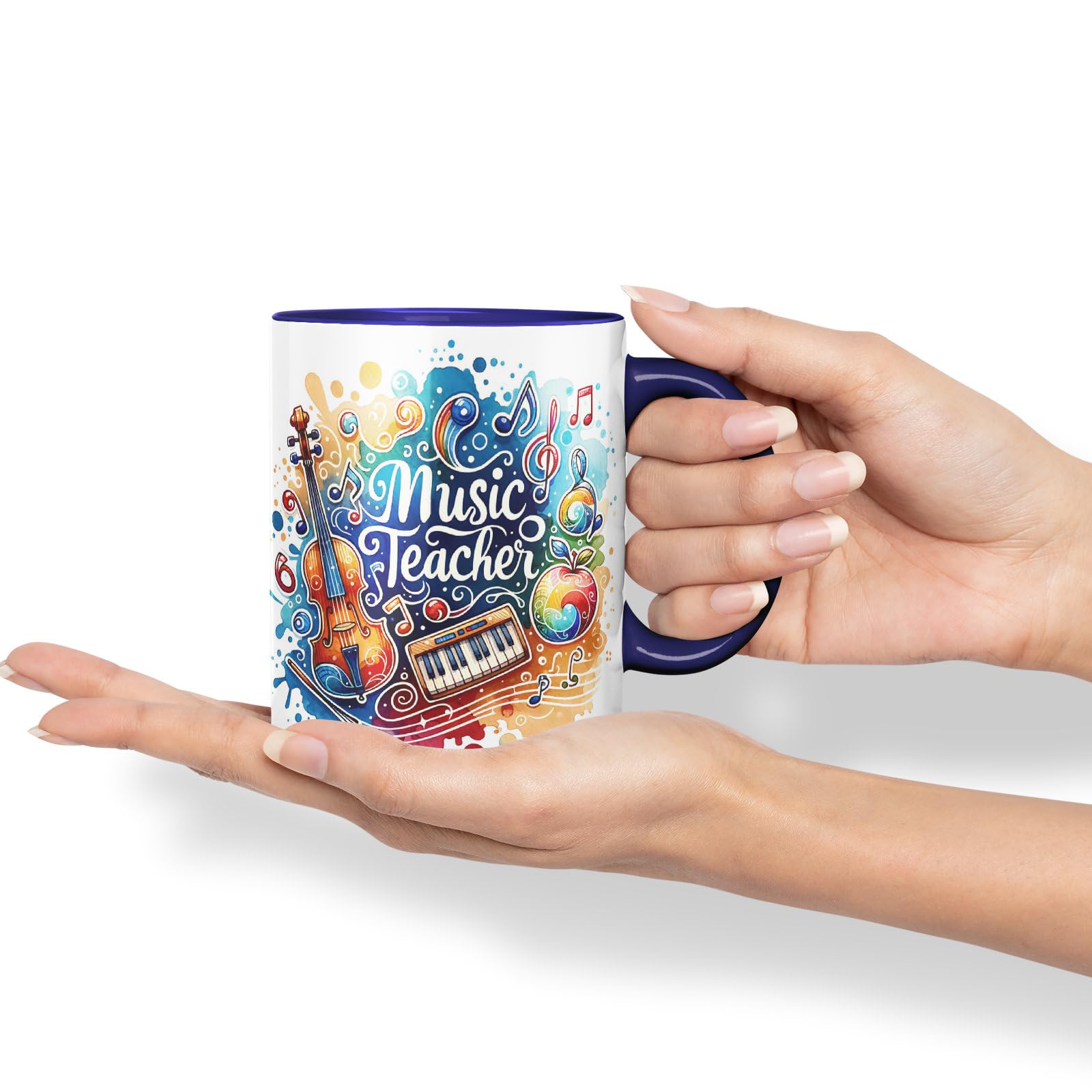 Music Teacher Mug Thank You, End of school gift Ceramic Coloured Mug Cup for Tea Coffee Hot brew 330ml 11Oz Gift (Navy)